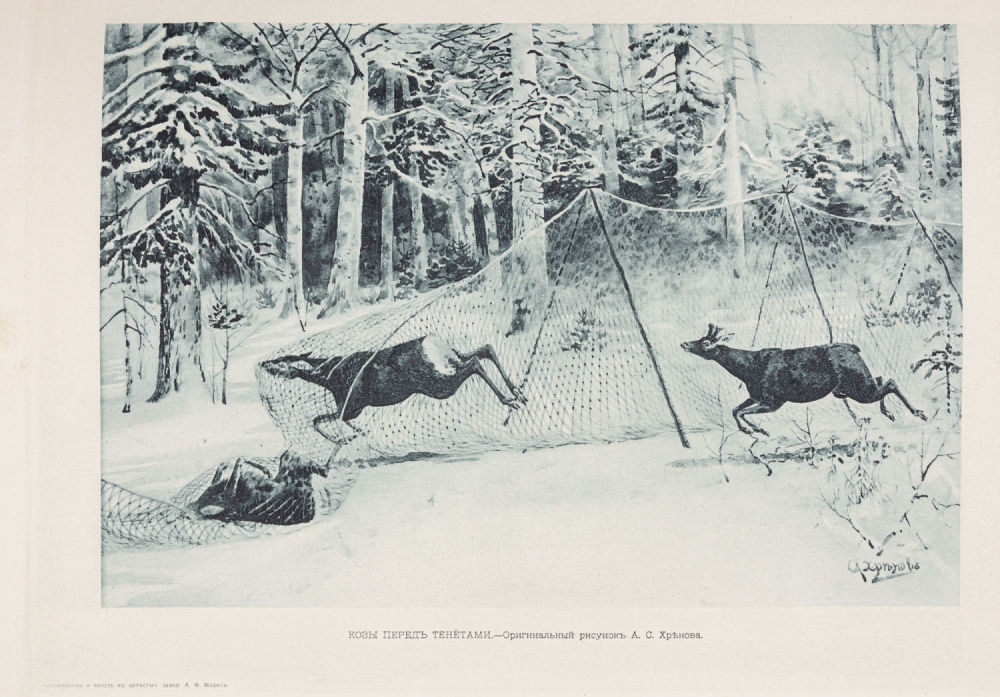 Прекрасно иллюстрированное сочинение, подготовленное и по высочайшему повелению изданное знатоком и непосредственным участником русского охотничьего движения, авторитетным кинологом царской России и куратором императорских охот, литератором и художником Г.П. Карцовым (1861-1931).
