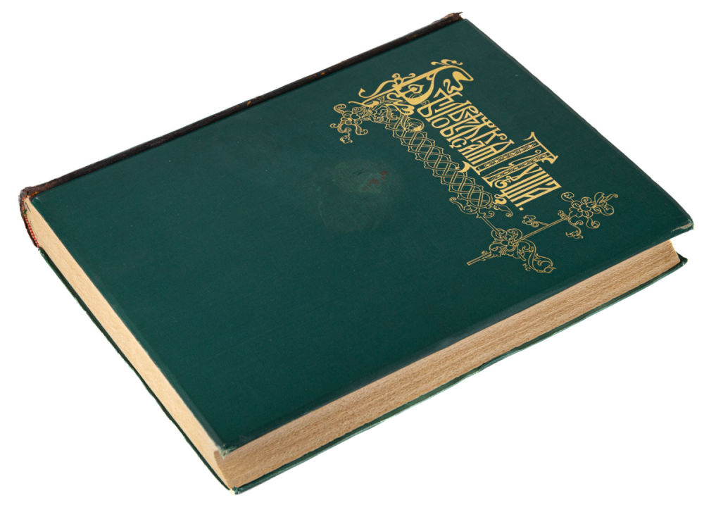 Переплет – издательский; картон, коленкор, корешок – кожа с золотым тиснением, форзацы – орнаментированные, трехсторонний торшонированный обрез.