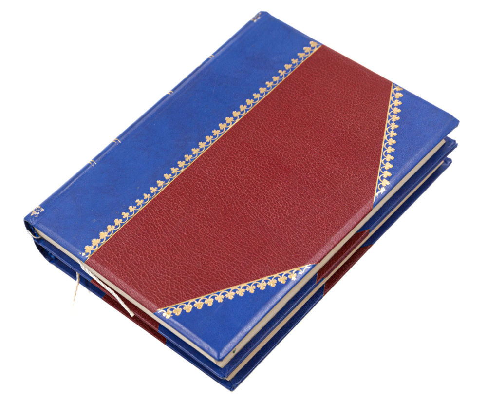 Переплет – владельческий; картон, ледерин с золотым тиснением, верхний обрез тонированный, ляссе.