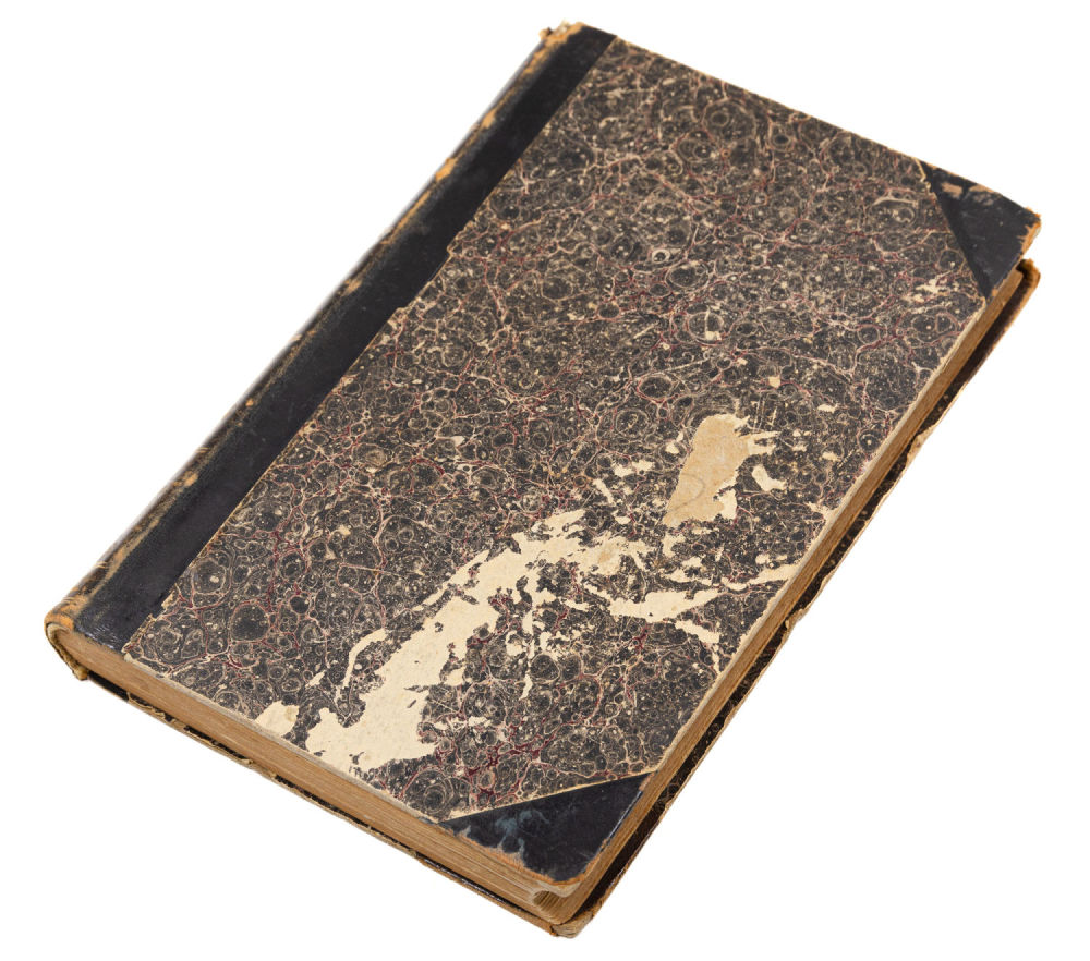 Переплет – владельческий; картон, мраморная бумага, корешок – кожа с золотым тиснением.