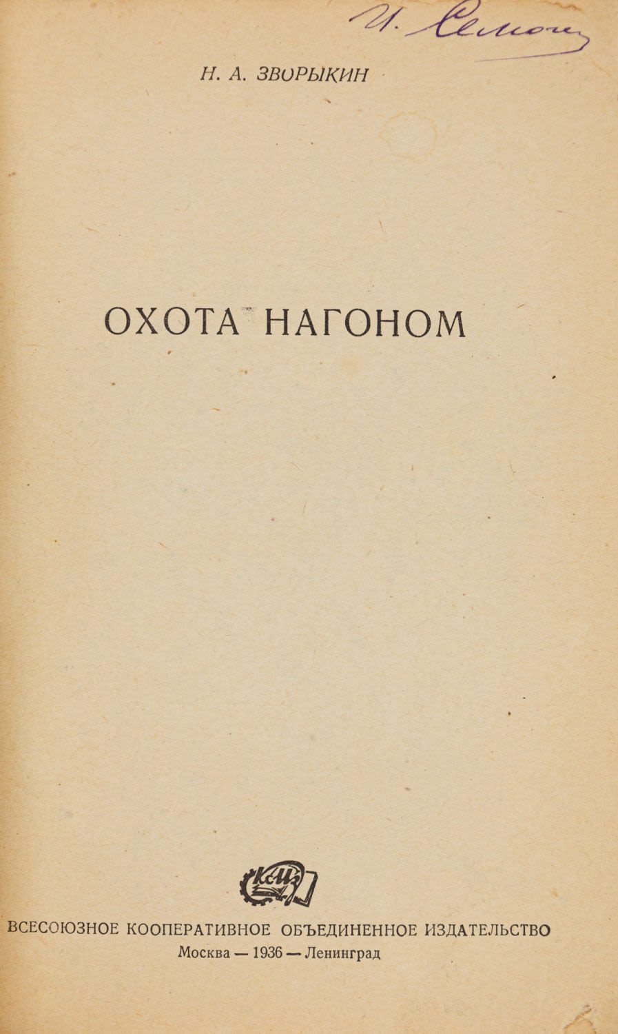 4) Зворыкин Н.А. Охота нагоном. М.; Л.: КОИЗ, 1936. – 70, [2] с.: черт.; 22х15 см. – (Библиотека охотника)
