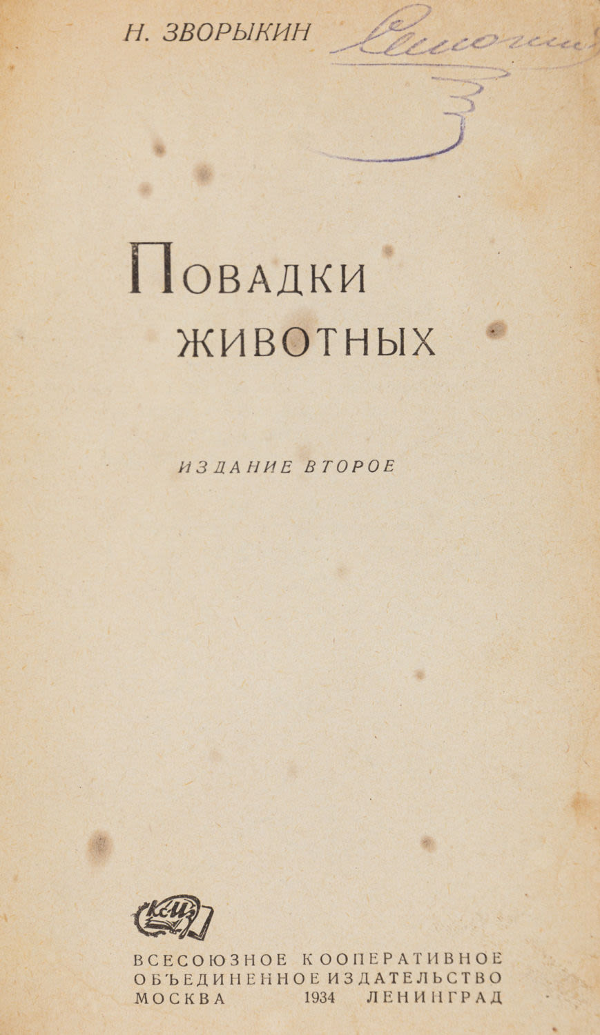 2) Зворыкин Н.А. Повадки животных. – 2-е изд. М.; Л.: КОИЗ, 1934. – 60 с.; 21×15 см.