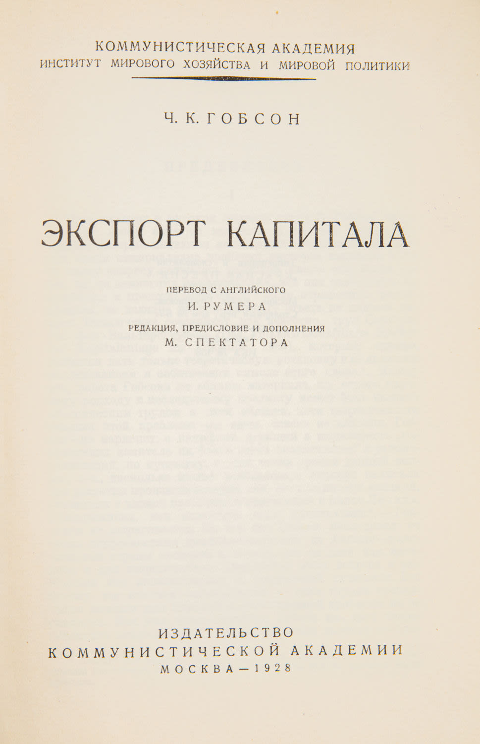 Пер. с англ. И. Румера; Ред., предисл. и доп. М. Спектатора. М.: Изд-во Коммунистической академии, 1928. — 260, [4] с.; 23х15 см.