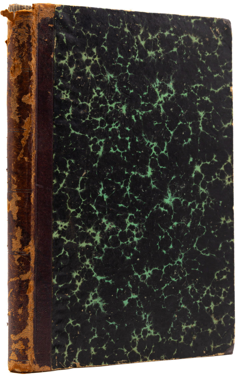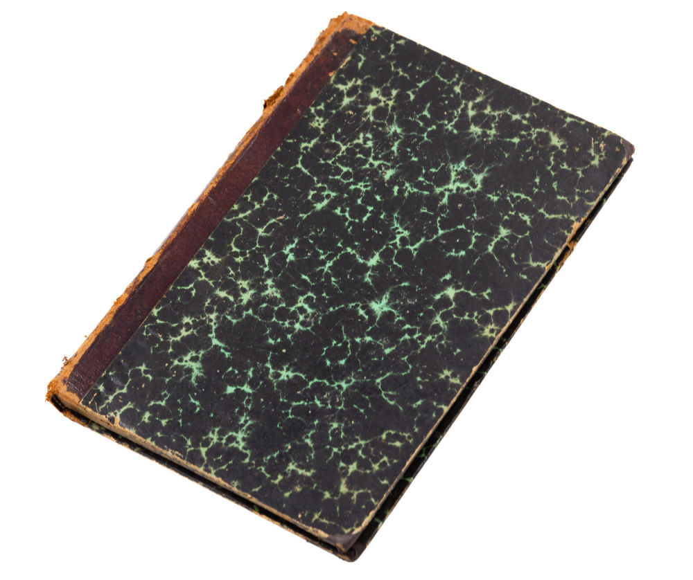 Переплет – владельческий; картон, мраморная бумага, корешок – кожа, трехсторонний мраморированный обрез.