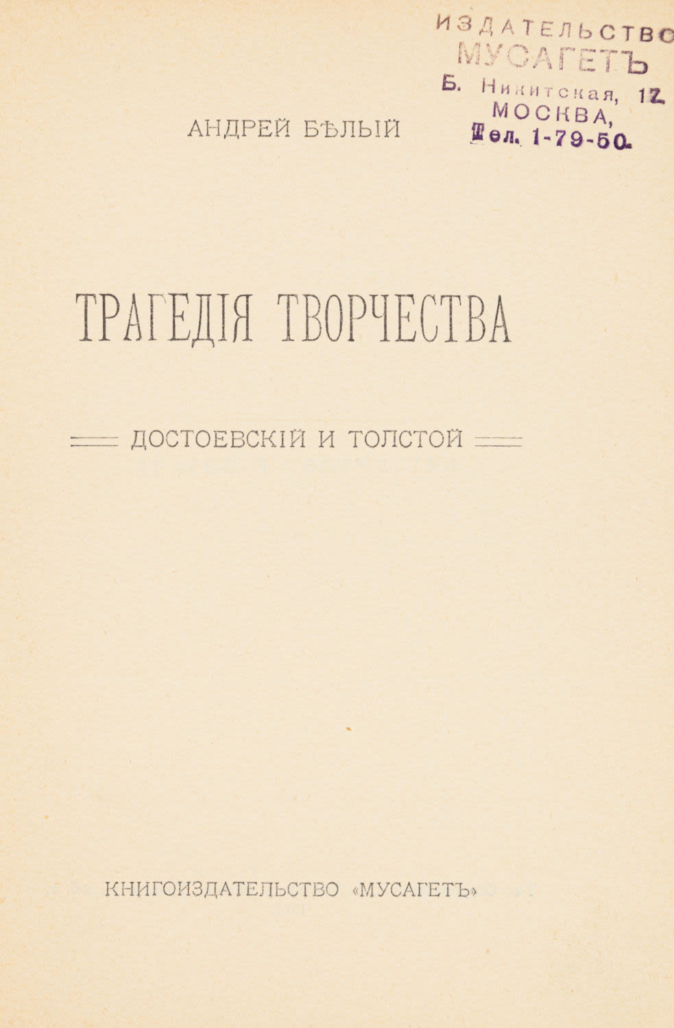 Штамп книгоиздательства «Мусагет» на верхней обложке, авантитуле и тит. л.