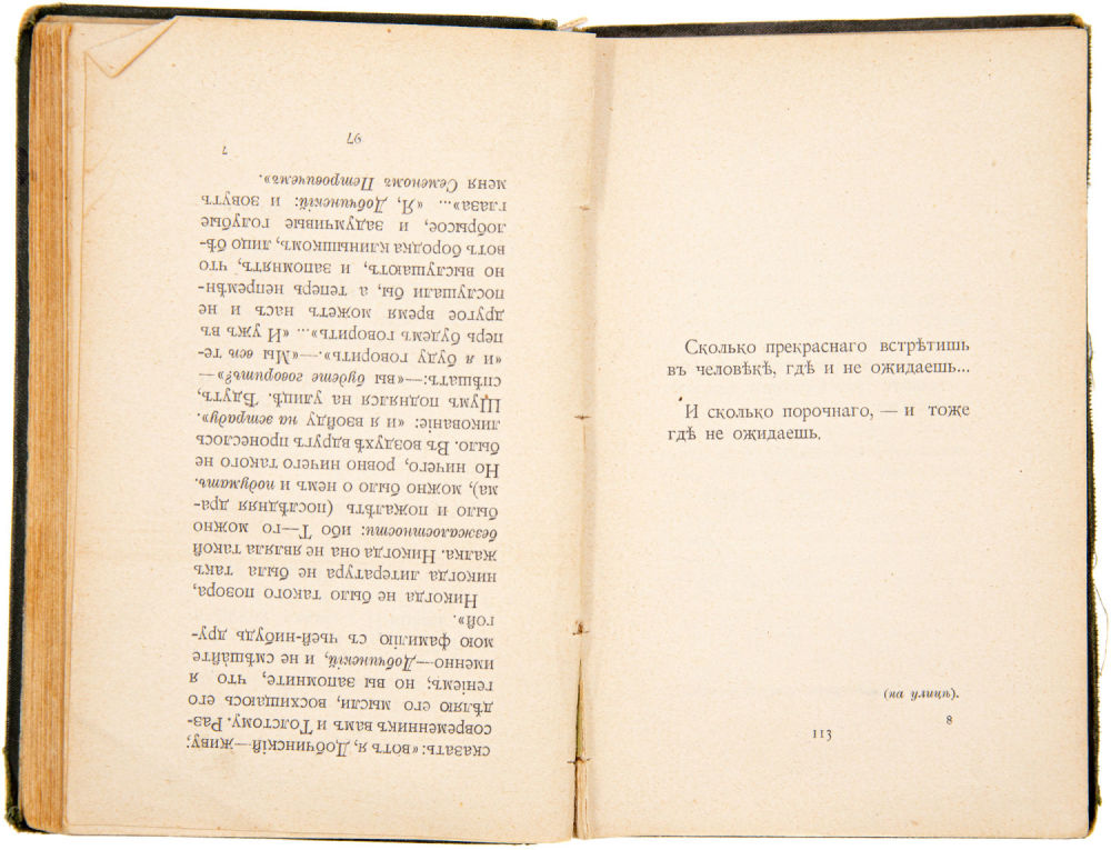 Сохранность – хорошая, без изд. обложек, потёртости переплёта, продольный надрыв по корешку, карандашные читательские пометки, С. 97-110 вплетены не по пагинации в перевернутом виде, утрата С. 111-112, С. 209-210 отделены от блока, блок расшатан.