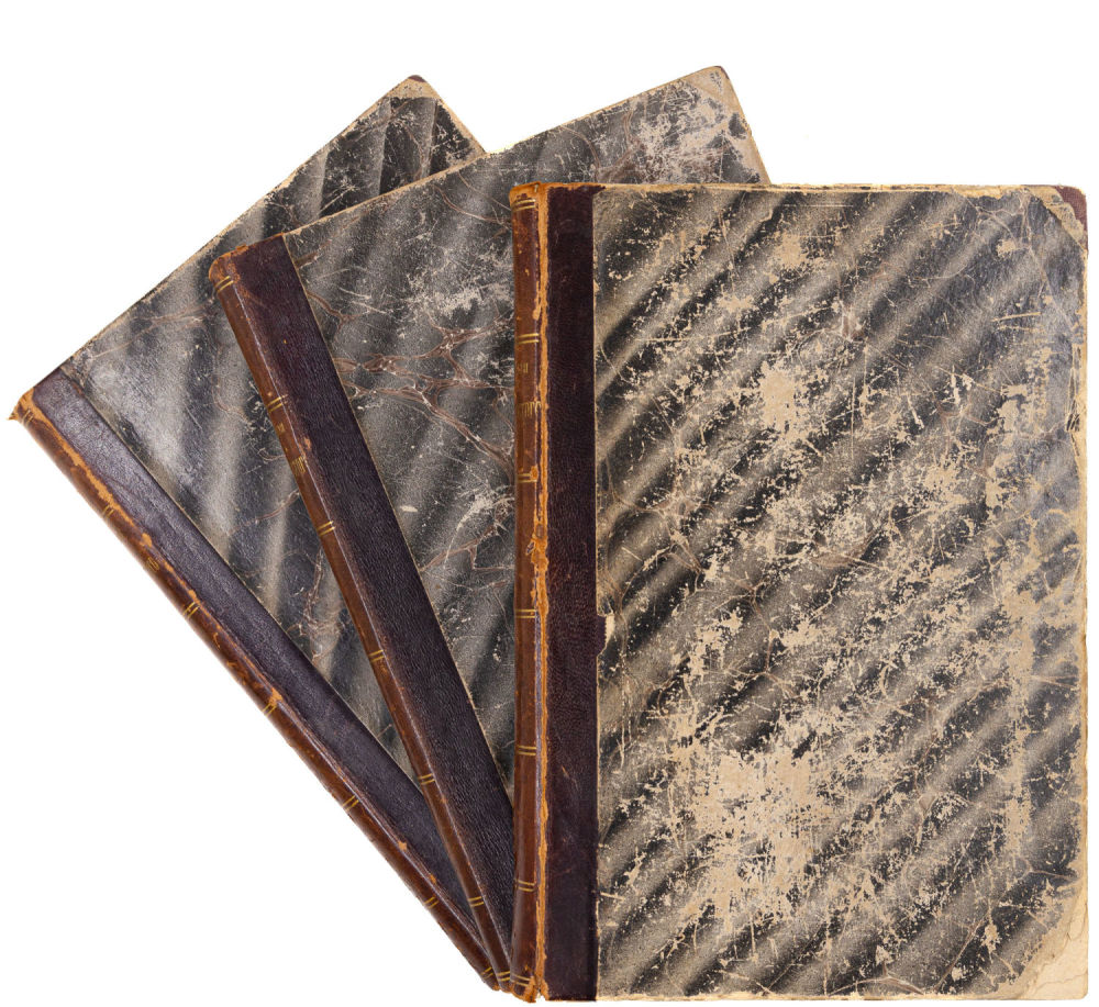 Сохранность – хорошая, потертости переплетов, надрыв нижнего края корешка (Т. 4), владельческие подписи на форзацев.