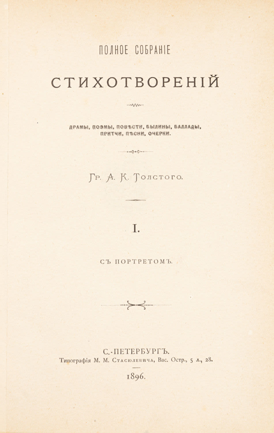 Т. 1: Полное собрание стихотворений. Ч. 1. 1896. – [4], XVI, 368 с., [1] л. фронт. (портр.);