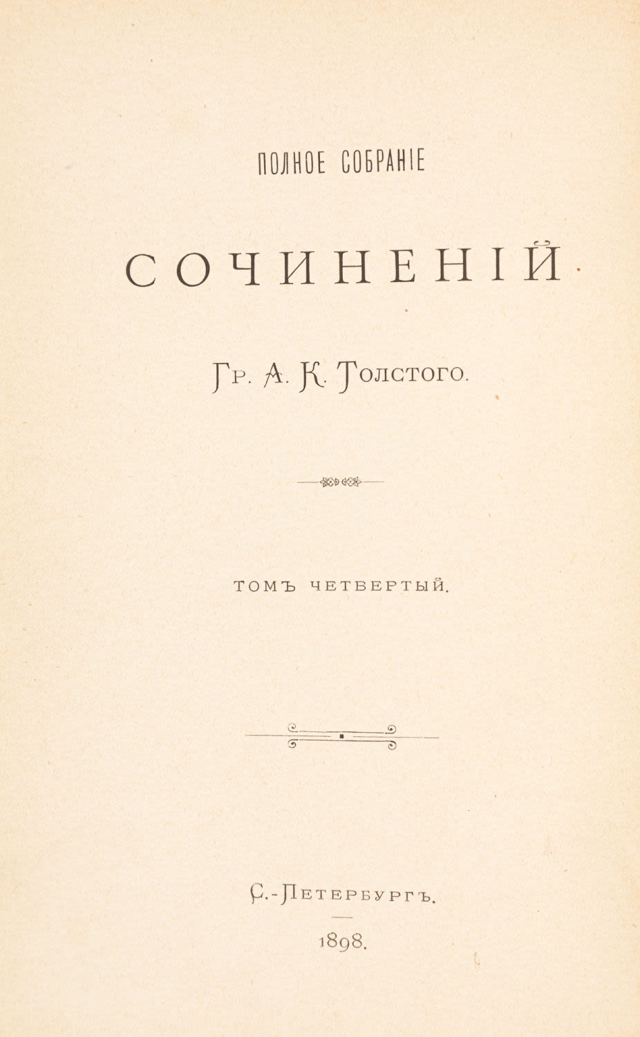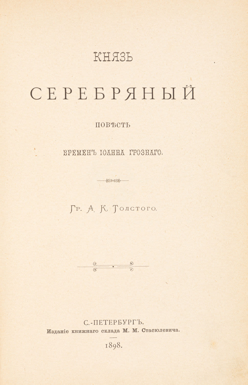 Т. 4: Князь Серебряный. Повесть времен Ивана Грозного. 1898. – VIII, 360 с.; 23×15,5 см.