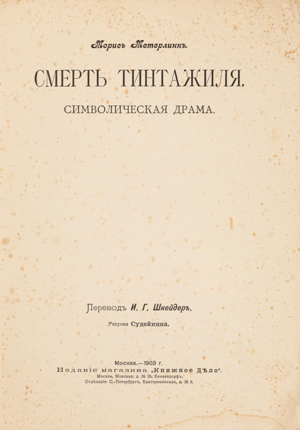 Пер. И.Г. Шнейдер; Рис. Судейкина. М.: Изд. маг. «Книжное дело», 1903. – 34, [2] с.: ил.; 24,5х17,5 см.