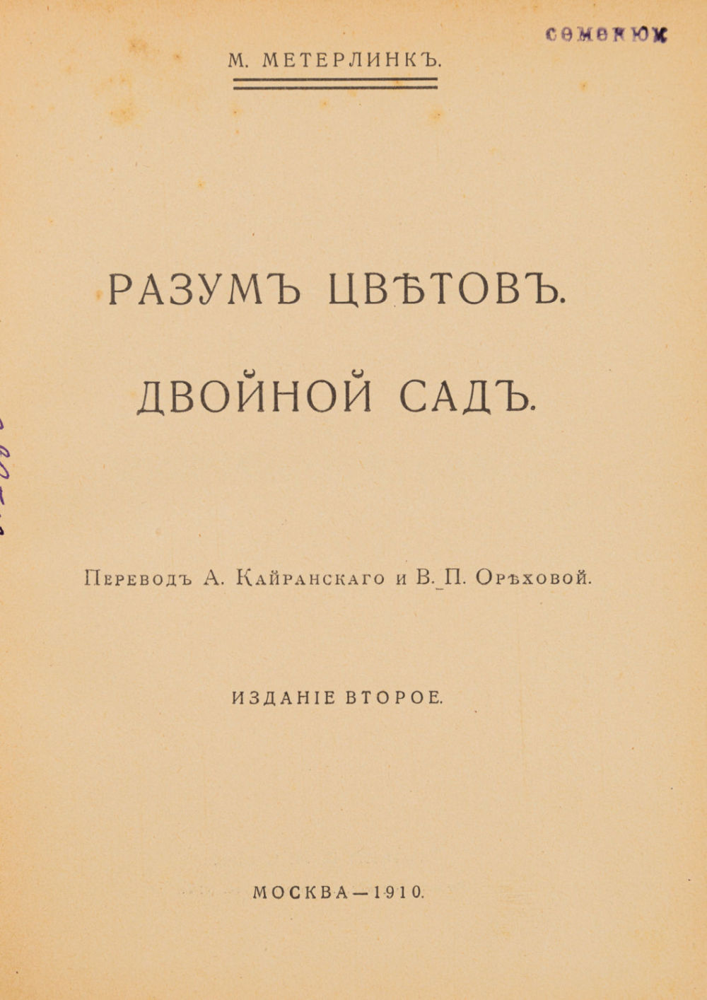 Т. 5: Разум цветов. Двойной сад. – 2-е изд. – [4], 291 с.;