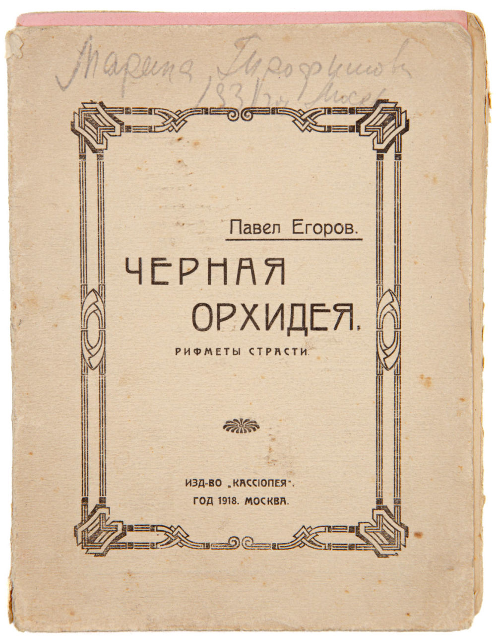 Издательская шрифтовая обложка с орнаментированной рамкой.