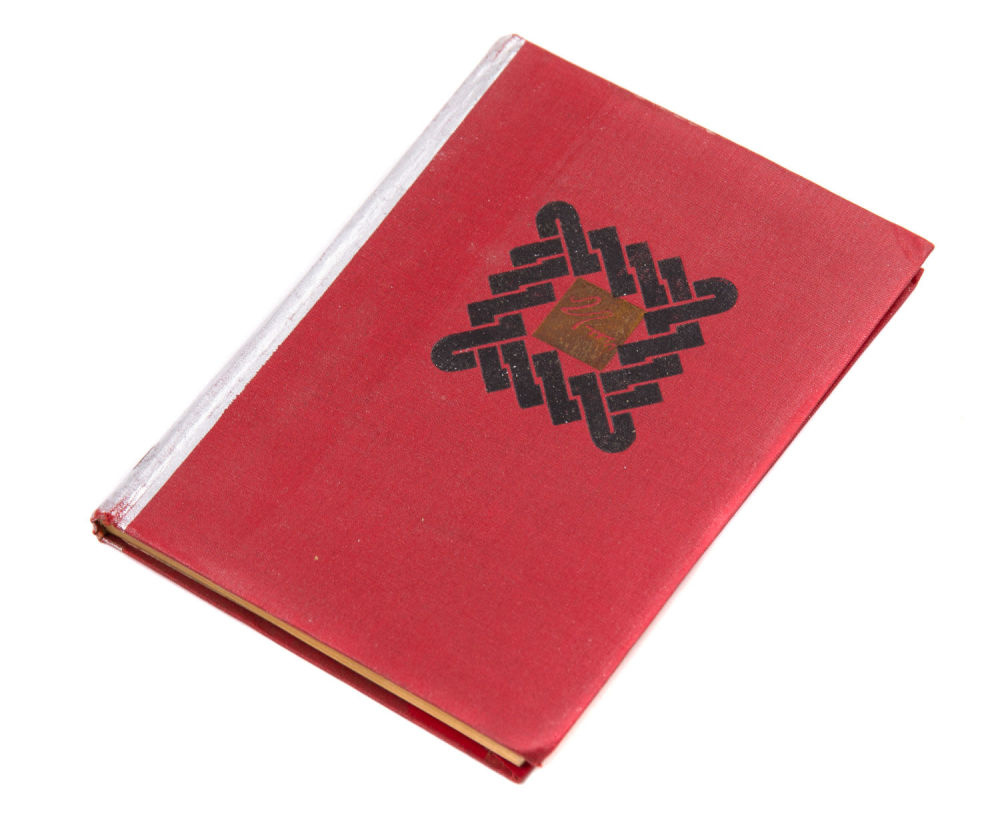 Издательский коленкоровый переплёт с цветным тиснением и издательская художественная суперобложка работы художника Н.В. Ильина.