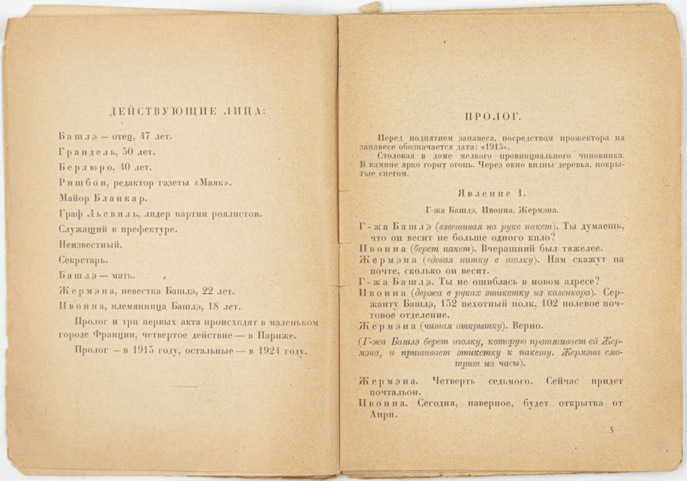 Комедия нравов в четырёх действиях с прологом; Пер. [с фр.] Е. Руссат. Л.; М.: Изд-во «МОДП и К», 1926. — 112 с.; 15,5х11,5 см.