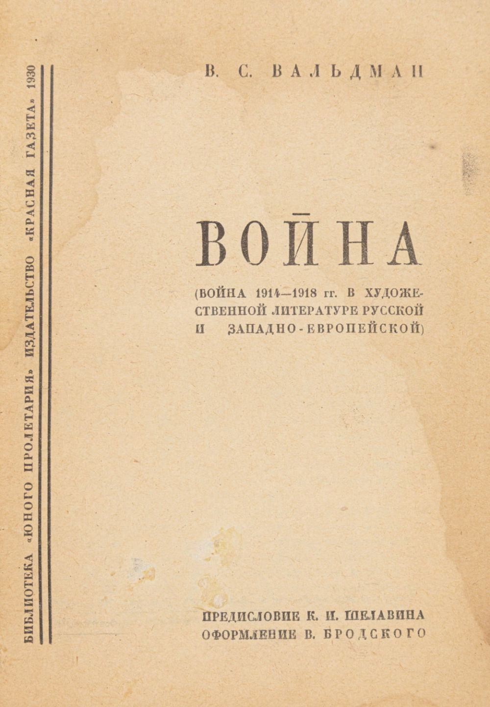 (Война 1914-1918 гг. в художественной литературе русской и западно-европейской); предисл. К.И. Шелавина. [Л.]: Изд-во «Красная газета», 1930. – 217 с.: ил.; 18х13 см.