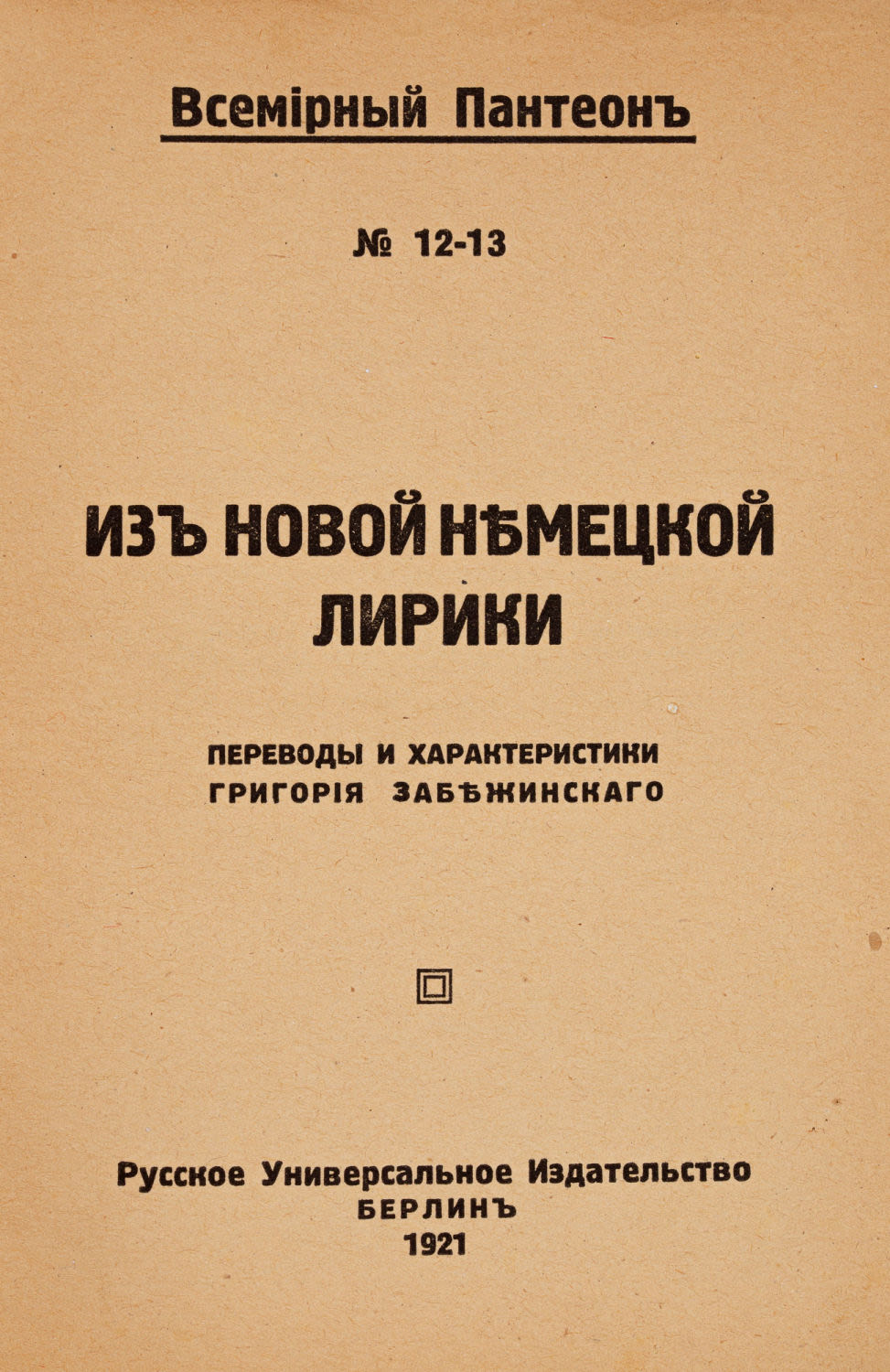Пер. и характеристики Г.Б. Забежинскаго. Берлин: Русское Универсальное издательство, 1921. — 125, [3] с.; 16х11 см.