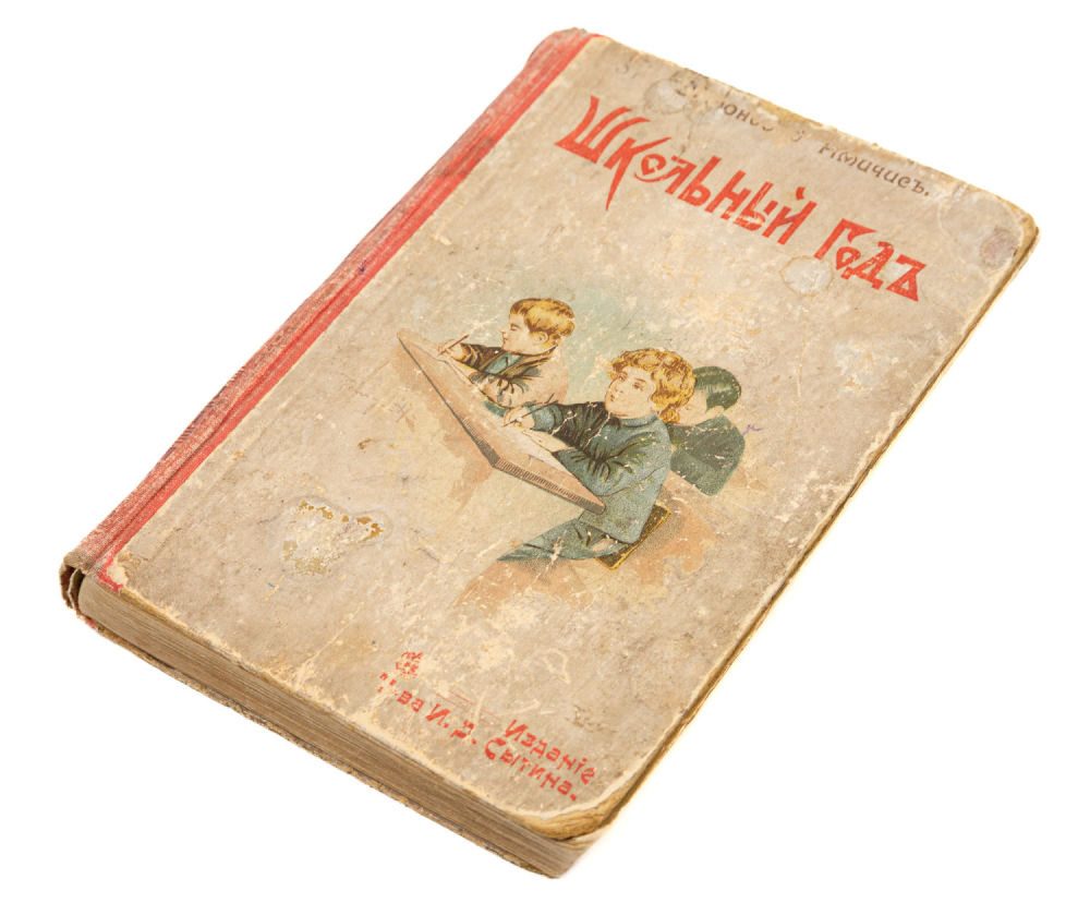 Переплёт – издательский иллюстрированный картонаж, тканевый корешок, орнаментированные форзацы.
