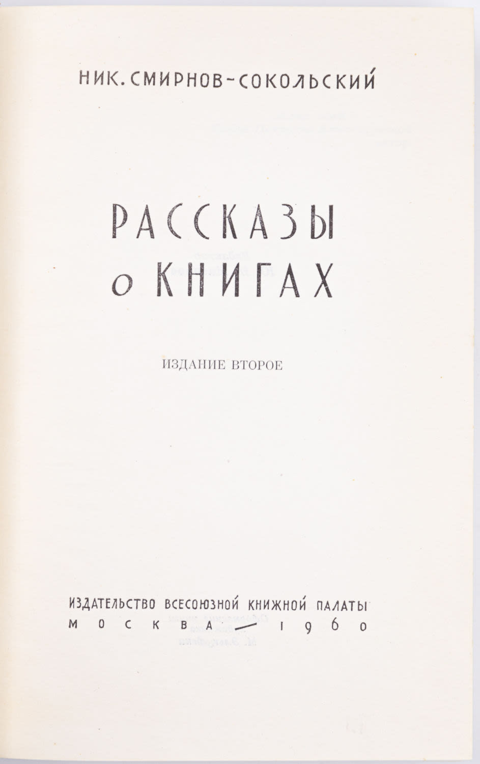 Автор издания — известнейший библиограф, собиратель, историк книги Николай Павлович Смирнов-Сокольский (1898–1962), был обладателем уникальной библиотеки из более 10 000 томов первых и прижизненных изданий русских классиков XVIII – ХХ вв., литературных альманахов и сборников.
