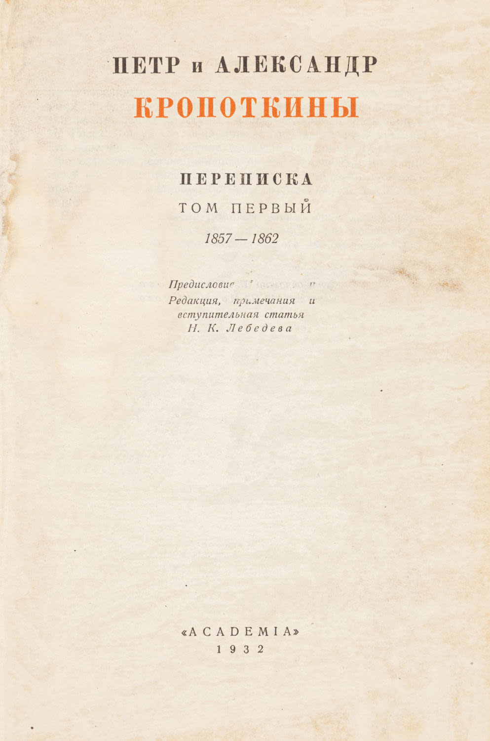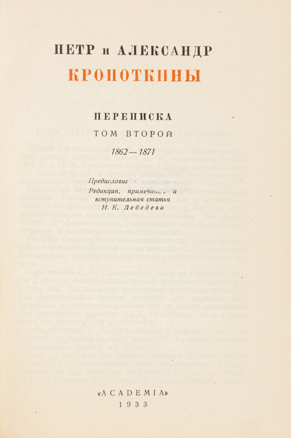 Предисл. И.Т. Смилги; Ред., вступ. ст. и примеч. Н.К. Лебедева. М.; Л.: Academia, 1932-1933.