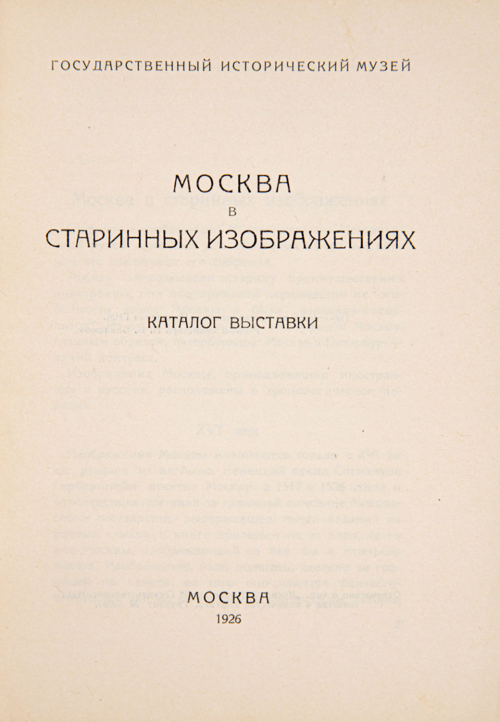 Каталог выставки произведений искусства, посвященных изображению Москвы, проходившей в Государственном историческом музее в 1926 г.