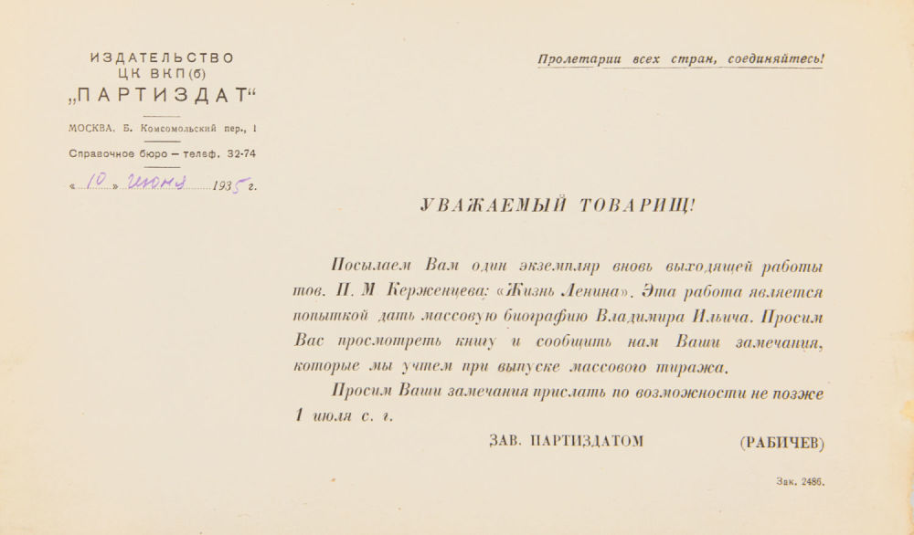К изданию приложена издательская информационная листовка с просьбой присылать замечания об издании, которые будут учтены при выпуске массового тиража.