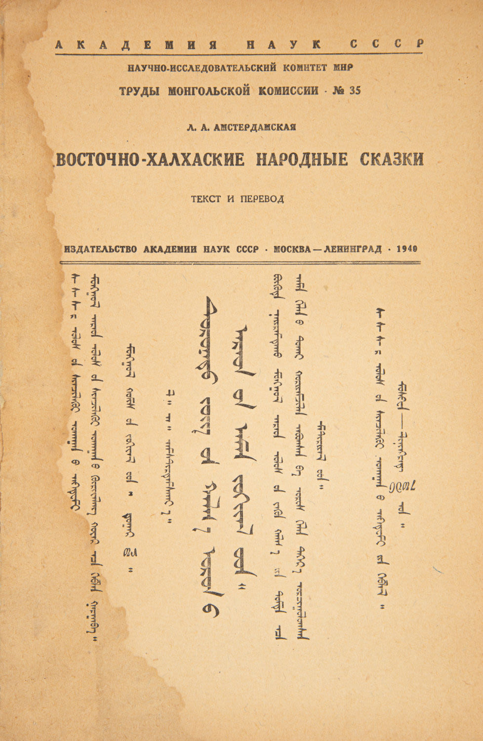 М.; Л.: Изд-во Академии наук СССР, 1940. – 63, [1] с.; 25,5х17 см. (Труды Монгольской комиссии; №35).