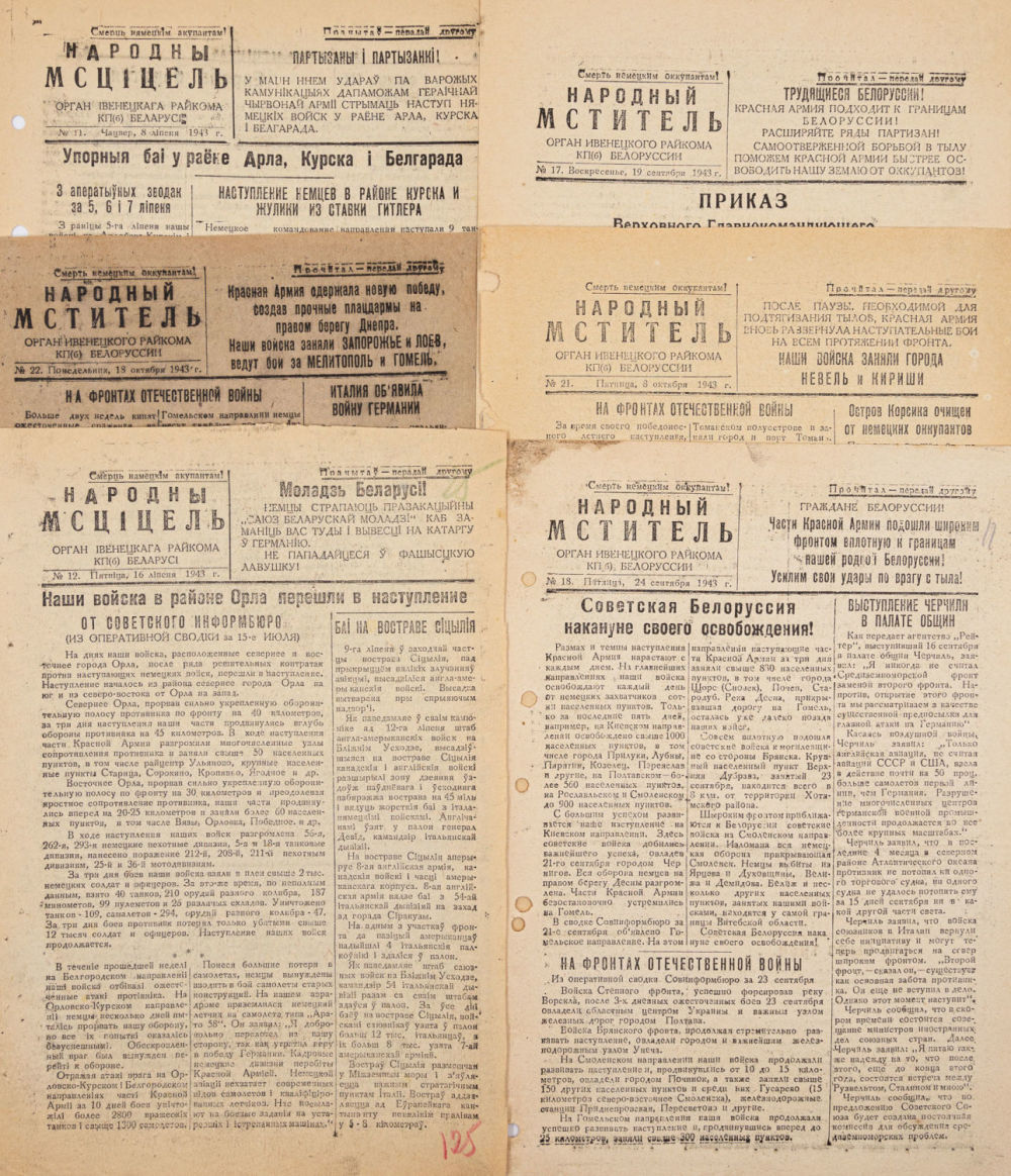 Орган Ивенецкого РК КП(б)Б. [Налибокская Пуща], 1943-1944; 29,5×20,5 см.