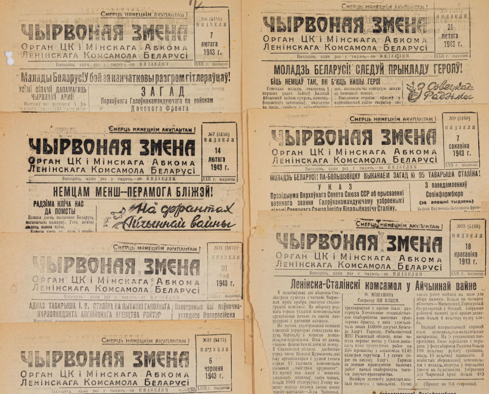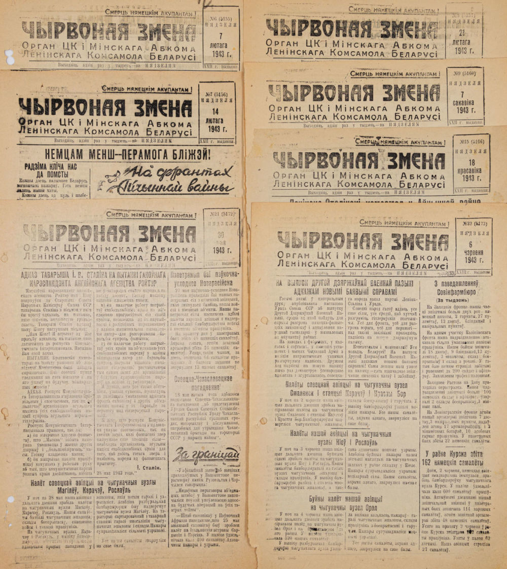 Орган ЦК и Минского Обкома Ленинского Комсомола Белоруссии. Минск, 1943-1944.; 30×21 см.