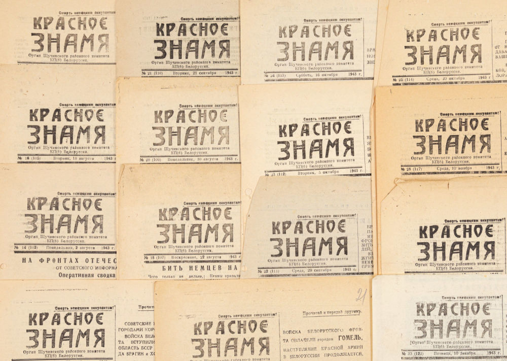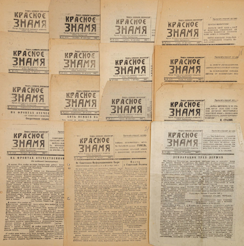 Орган Щучинского районного комитета КП(б)Б. [Щучинский район], 1943-1944; 28×20,5 см.