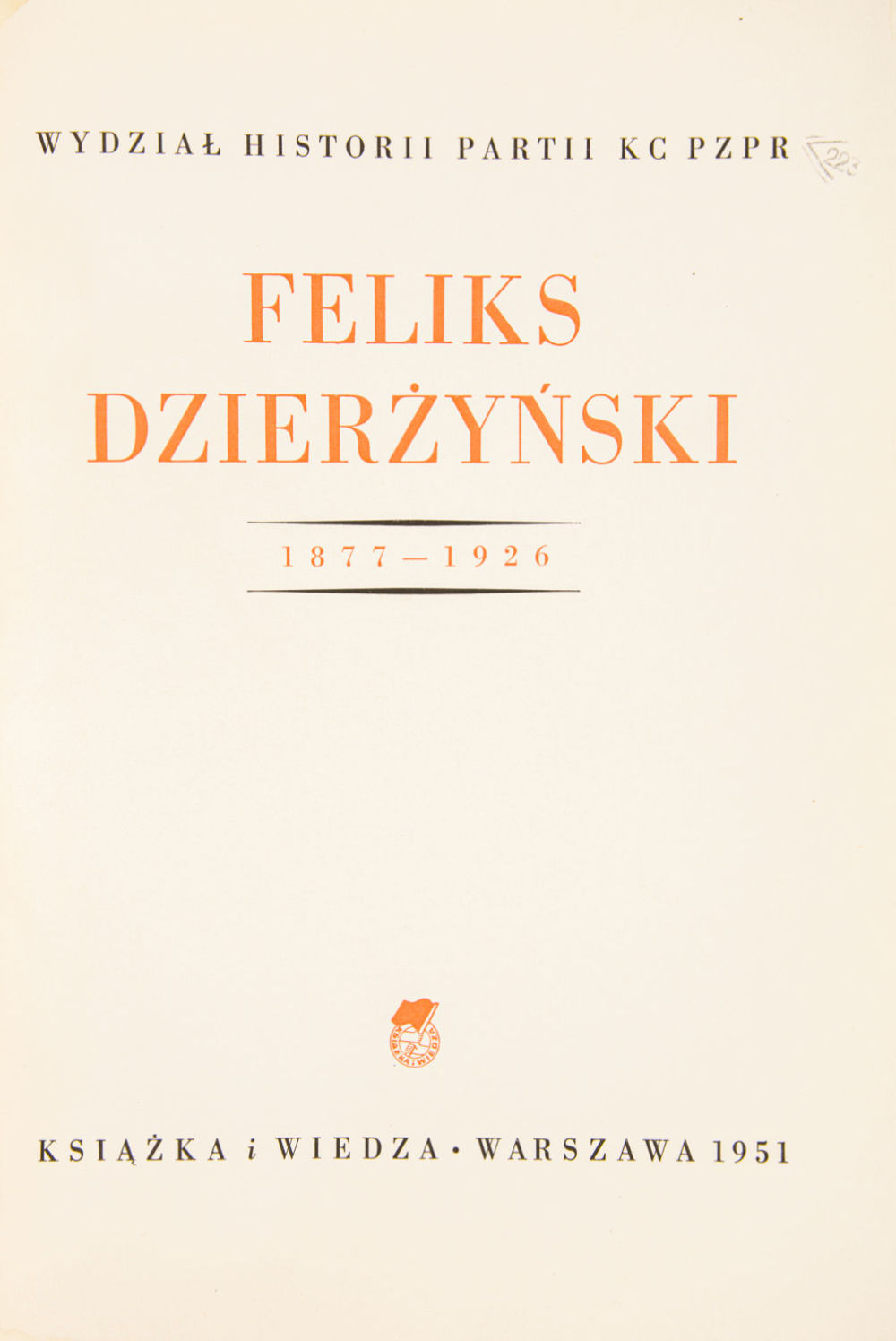 Feliks Dzierzynski: 1877-1926. Варшава: Книга и Знание, 1951. – 220 с.: ил., [20] л. ил.; 33х23,5 см.