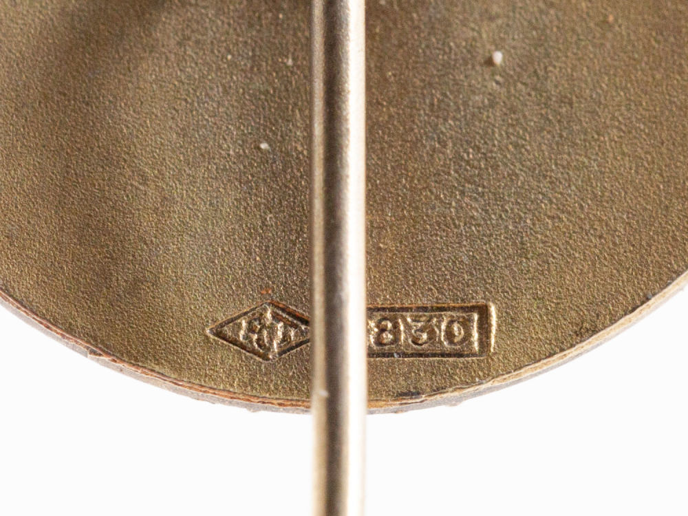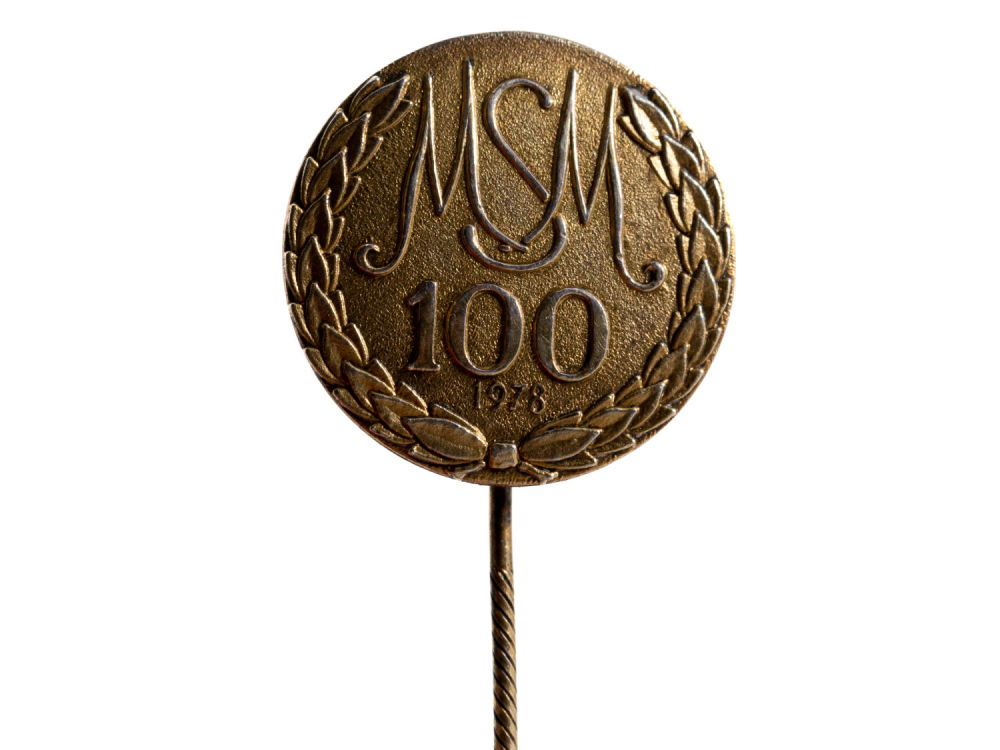 Европа, Германия (?). Серебро, золочение, штамповка. Надпись на значке: «MSM 100 1978». Клейма на оборотной стороне значка: «830» в прямоугольном щитке, /неразб./ в щитке в виде ромба. Размеры: длина – 5,8 см. Состояние: в хорошей сохранности.