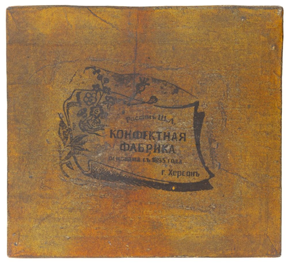 Российская империя, г. Херсон. Дерево, печать, бумага, фабричное производство. По сторонам коробки надписи: «Рассинъ Ш.Л. Конфектная фабрика основана съ1895 года г. Херсонъ», «Карамель Востычныя». Коробка запечатана заводским способом. Состояние: в хорошей сохранности, следы бытования, загрязнения. Размеры: 18,5х20,2х15 см.