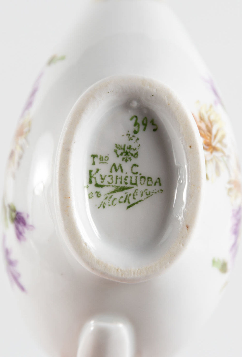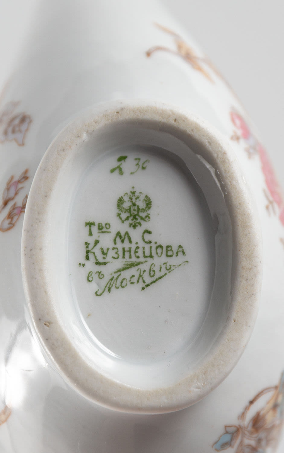 «Товарищество производства фарфоровых, фаянсовых и майоликовых изделий М.С. Кузнецова» было основано в 1887 г. М.С. Кузнецов следил за производством, внедрял новые технологии, отправлял мастеров зарубеж для обучения новым методам работы. Благодаря этому предприятие заняло лидирующие позиции в России. После 1917 г. предприятие было национализировано (кроме фабрики в Риге).