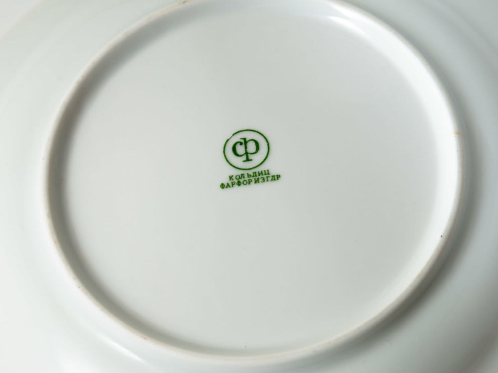 Германия. VEB Porzellancombinat Colditz. Фарфор, деколь, золочение. Марка – зеленым «Кольдиц фарфор из ГДР» под литерой «Ф» в кругу. Состояние: в хорошей сохранности. Размер: диаметр тарелки – 18,2 см.