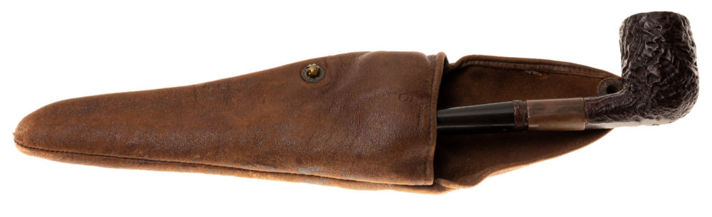 Англия, Лондон. Бриар, эбонит, сплав металлов; кожа. Надписи на стаммеле: «4 □», «Dunhill`s», «Pat. №os 1». Размеры: длина трубки – 15,5 см; длина футляра – 17,5 см. Состояние: в хорошей сохранности, незначительная трещина на корпусе, незначительные следы бытования.