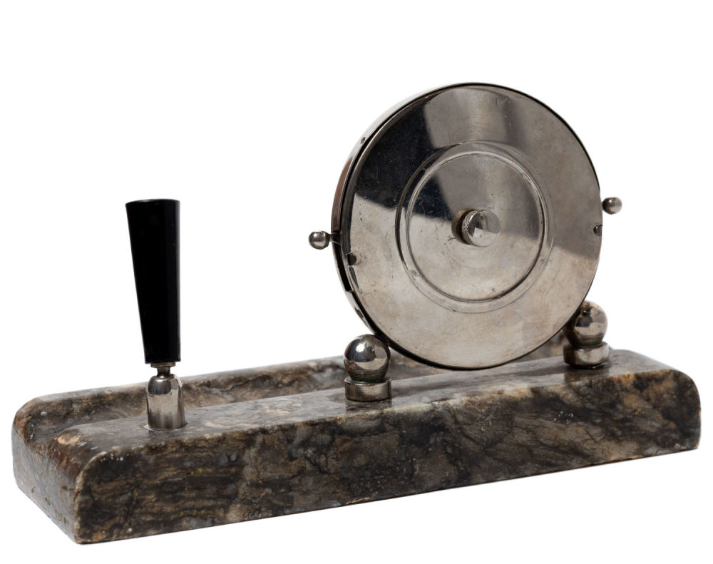 СССР. Мрамор, сплав металлов, пластмасса, бумага. Размеры: 7,9х21,7х12,8 см. Состояние: в хорошей сохранности, следы бытования, ручка утрачена.