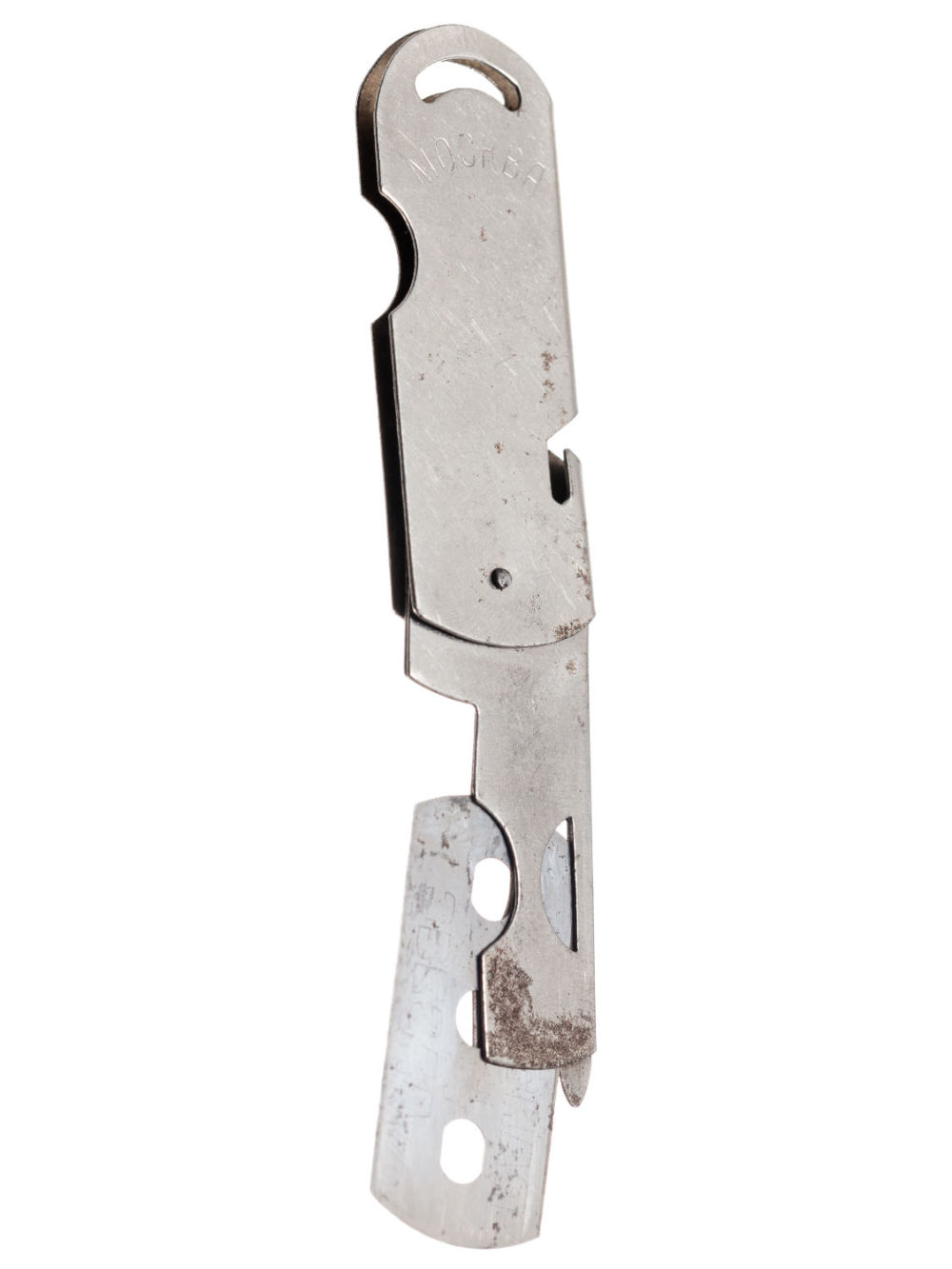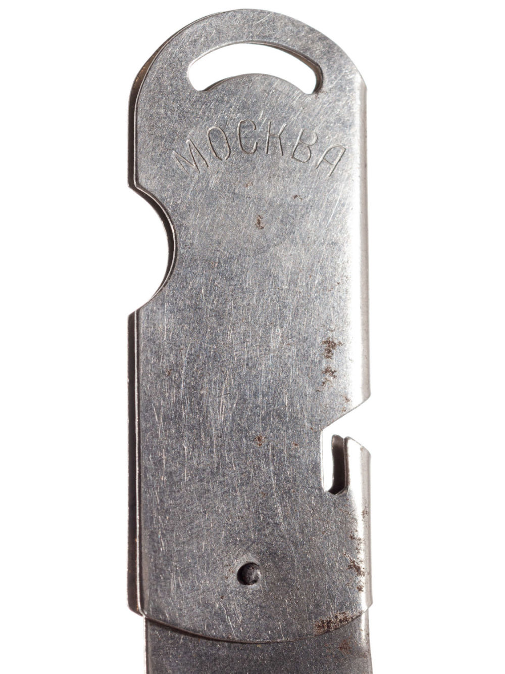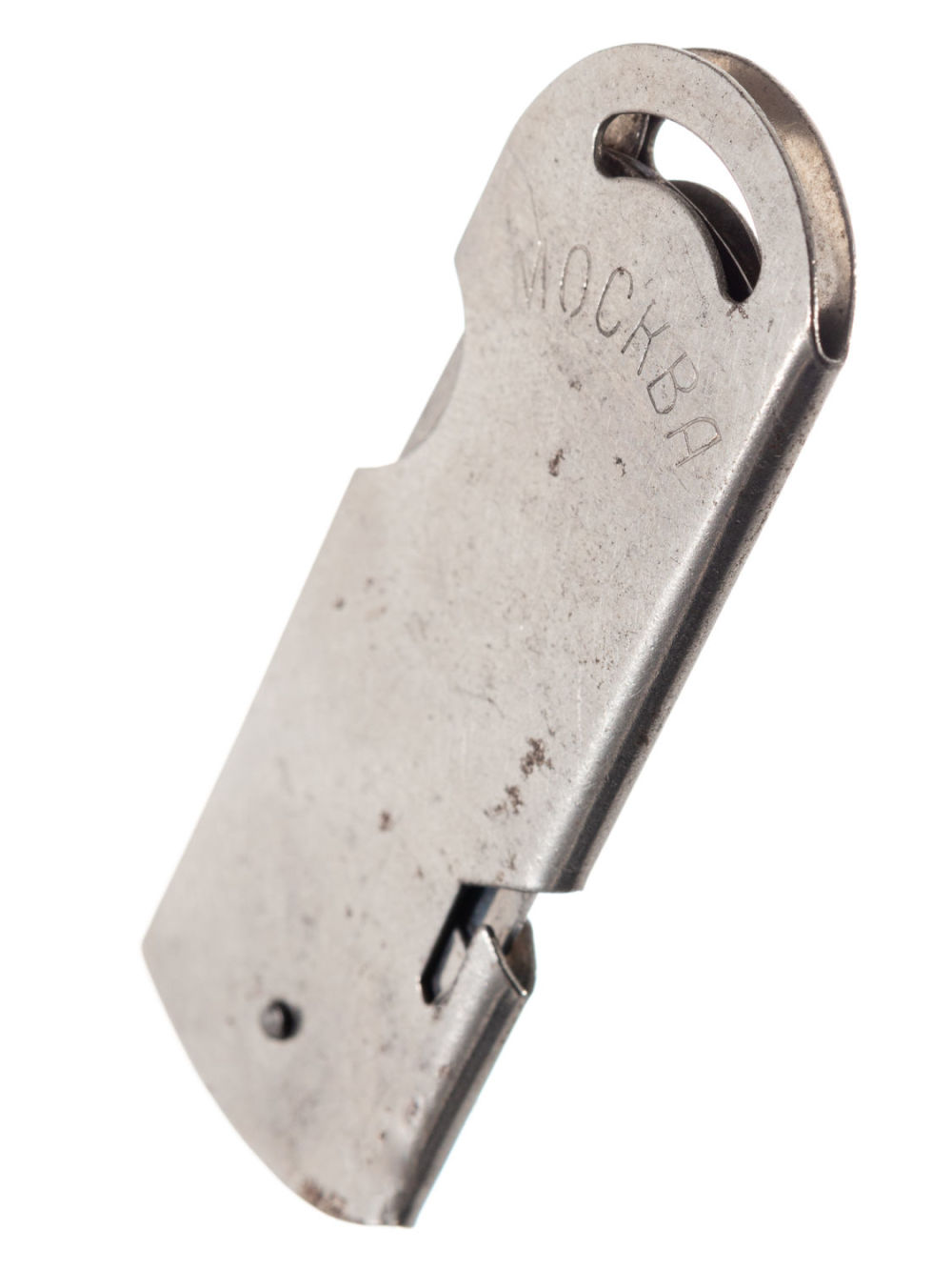 СССР, Москва. Сплав металлов, фабричное производство. Надписи на сторонах чинки: «Канцпром», «Москва». Размеры: 6,2х2,5 см (в сложенном состоянии). Состояние: в хорошей сохранности, незначительные следы бытования, следы ржачины.