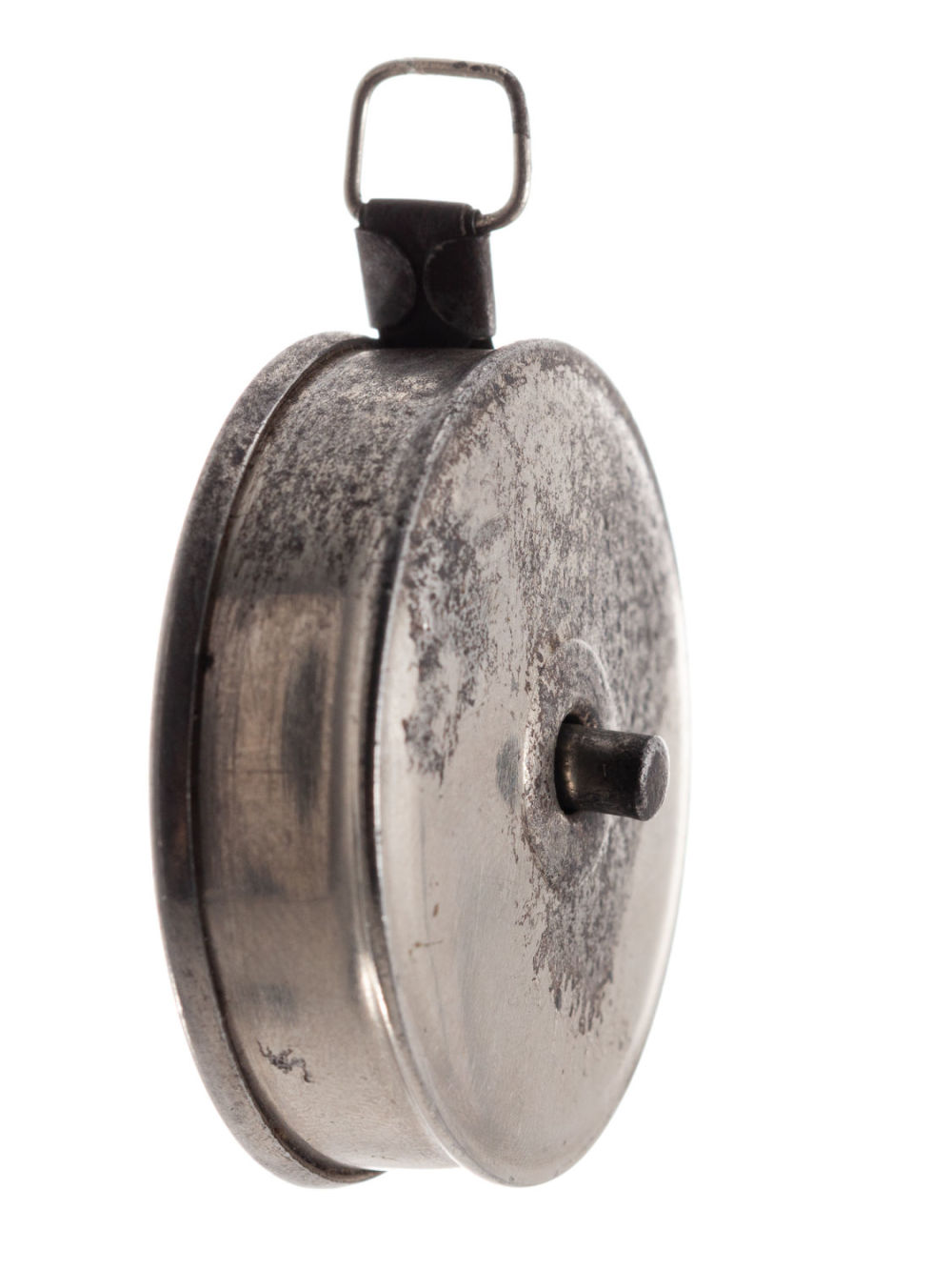СССР, Ленинград. Сплав металлов, фабричное производство. Надпись на ленте: «Гос. зд. "Металлометр" Н.К.М.П. Ленинград Р.С.Ф.С.Р.» и логотип завода. Размеры: диаметр – 3,9 см. Состояние: в хорошей сохранности, следы бытования.