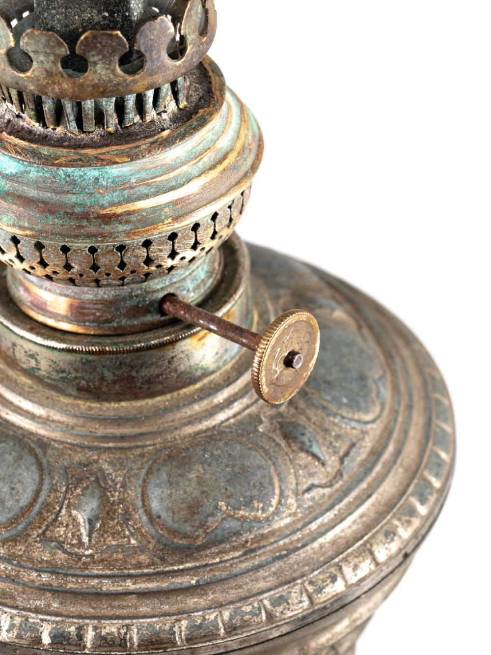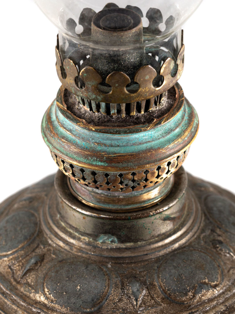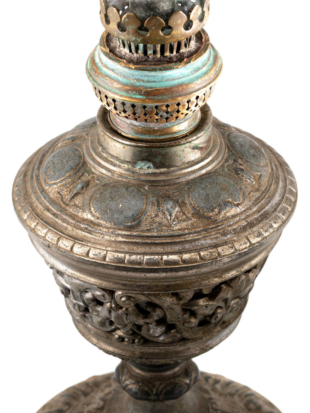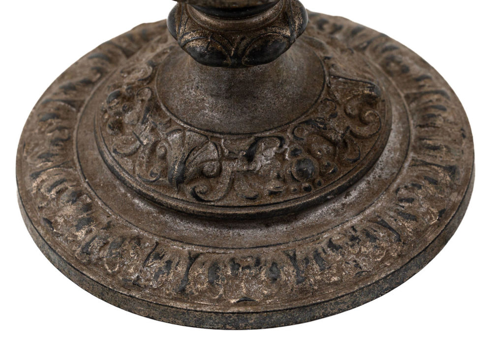 Европа; СССР (колба). Сплав металлов, бронзирование; стекло. На плафоне наклейка с надписью: «Завод «Октябрь» №7». Размеры: высота – 48,4 см, диаметр – 14 см. Состояние: в хорошей сохранности, патина, потертости бронзирования, следы бытования.