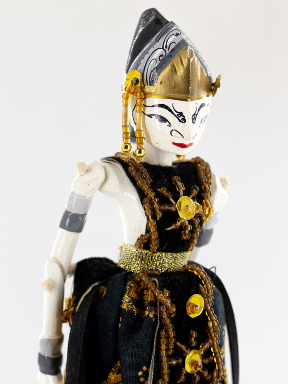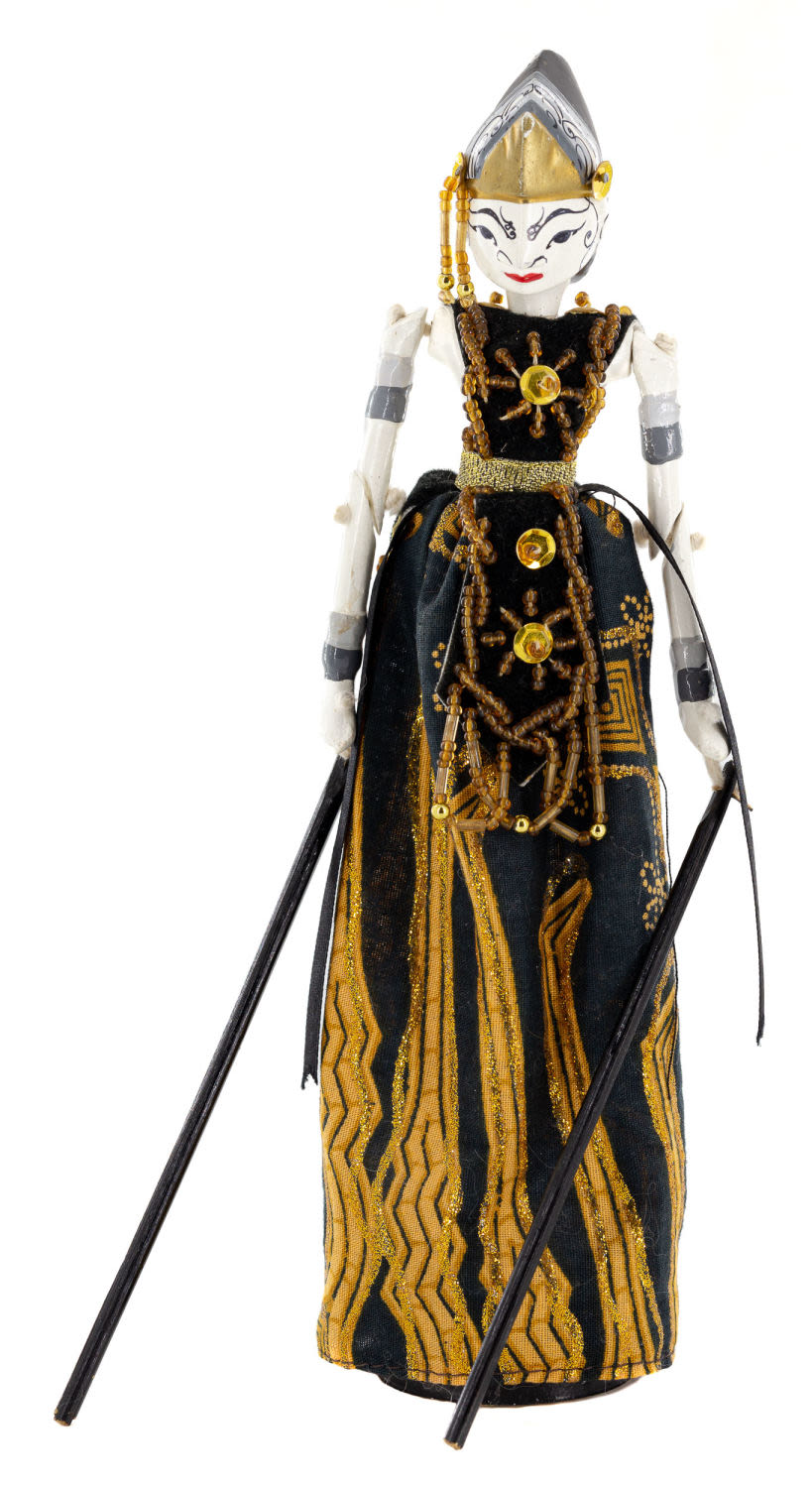 Индонезия. Дерево, крашение; ткань, бисер, пайетки, вышивка. Размеры: высота – 21,8 см. Состояние: в хорошей сохранности, незначительные утраты красочного слоя.