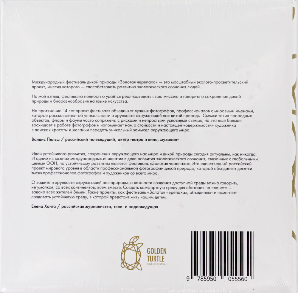 Золотая черепаха. Фото. Живопись. Дизайн. Дикая природа: лучшие работы со всего мира. М.: [Б.и.], 2020; 23,1х23 см. Не нарушена целостность издательской пленки. Переплёт – издательский картонаж с золотым тиснением, иллюстрированная суперобложка.