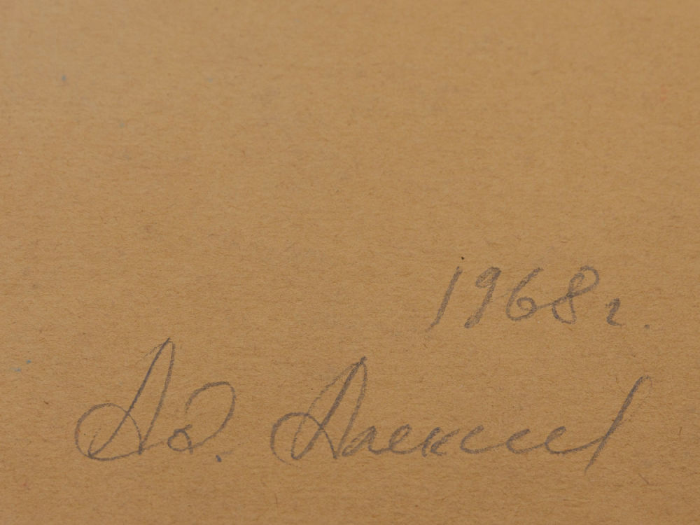 СССР. Бумага, акварель. В нижнем правом углу подпись художника карандашом: «1968 г. Ад. Алексеев». На оборотной стороне в верхнем левом углу надпись карандашом: «Ад. Алексеев «Юноша». Бум. акв. 57,1х40,5 1968 год». Размеры: 57,1х40,5 см. Состояние: в хорошей сохранности.