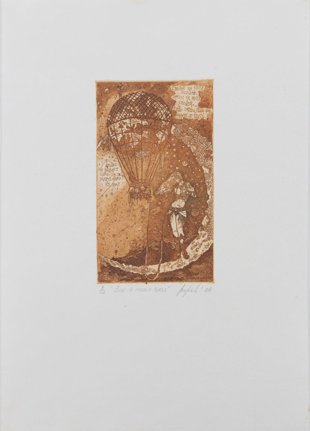 «Все в наших руках»: по нижнему краю подпись карандашом: «3/10 «Все в наших руках»» и подпись автора: «Волков `08». На оборотной стороне надпись карандашом: «№125». Размеры: листа – 29,7х20,8 см, изображения –13,8х8 см. Состояние: в хорошей сохранности.
