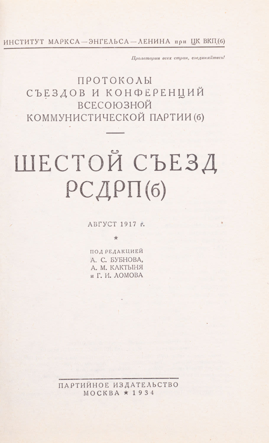 Под ред. А.С. Бубнова, А.М. Кактыня и Г.И. Ломова. М.: Партийное изд-во, 1934. — XXVIII, 371 с.; 23х16 см.