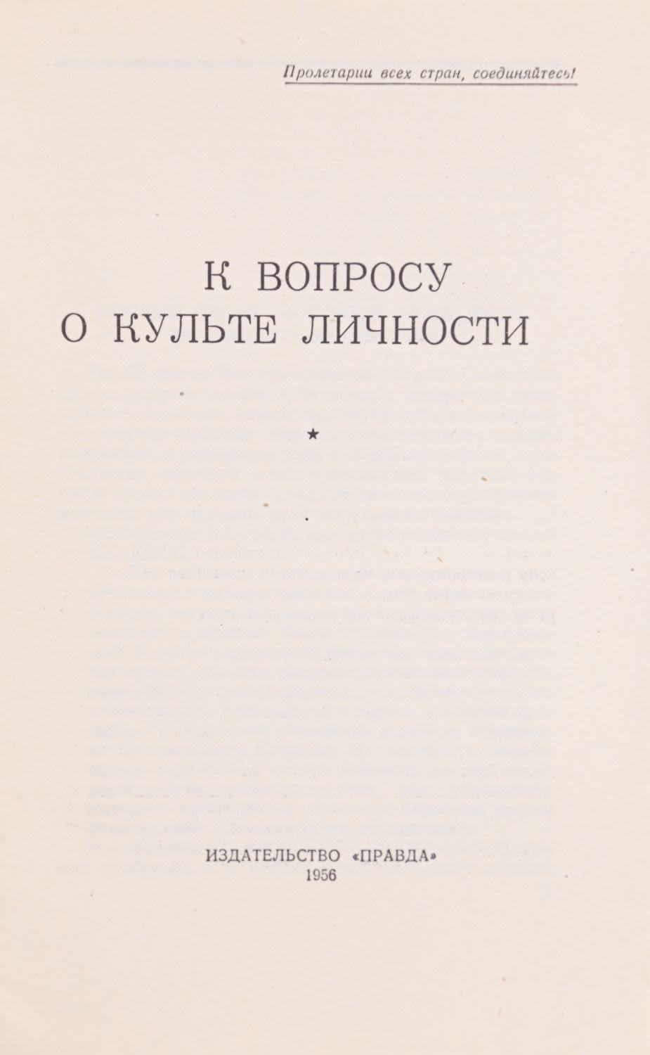 2) К вопросу о культе личности. [М].: Правда, 1956. – 44 с.; 20×13 см.