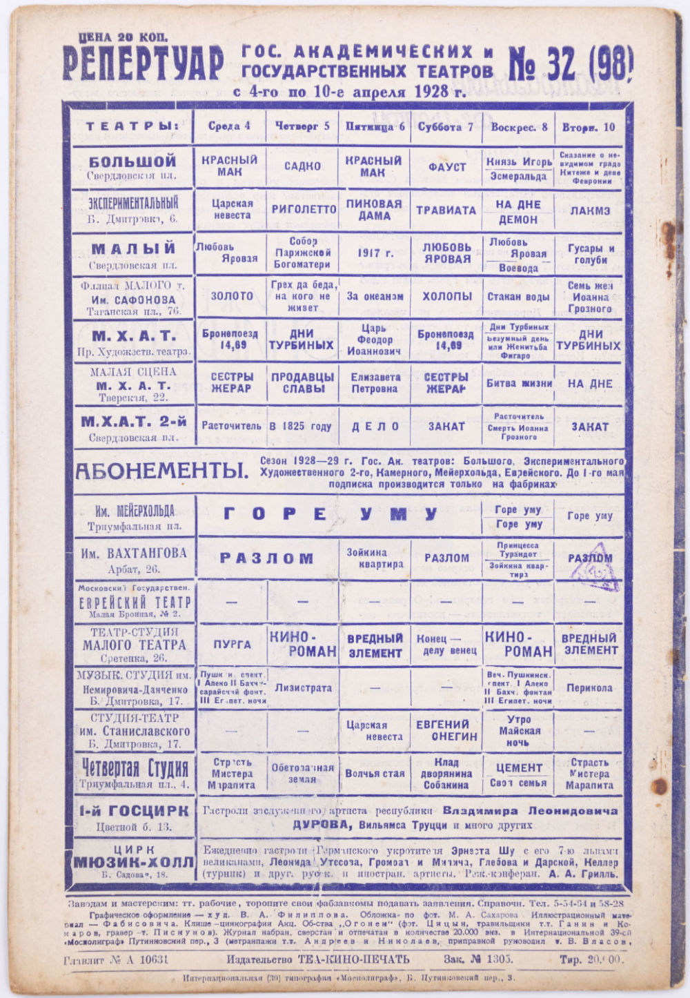 Театральный еженедельник: Журнал Наркомпроса. М.; Л.: Теакинопечать, 1927-1929.