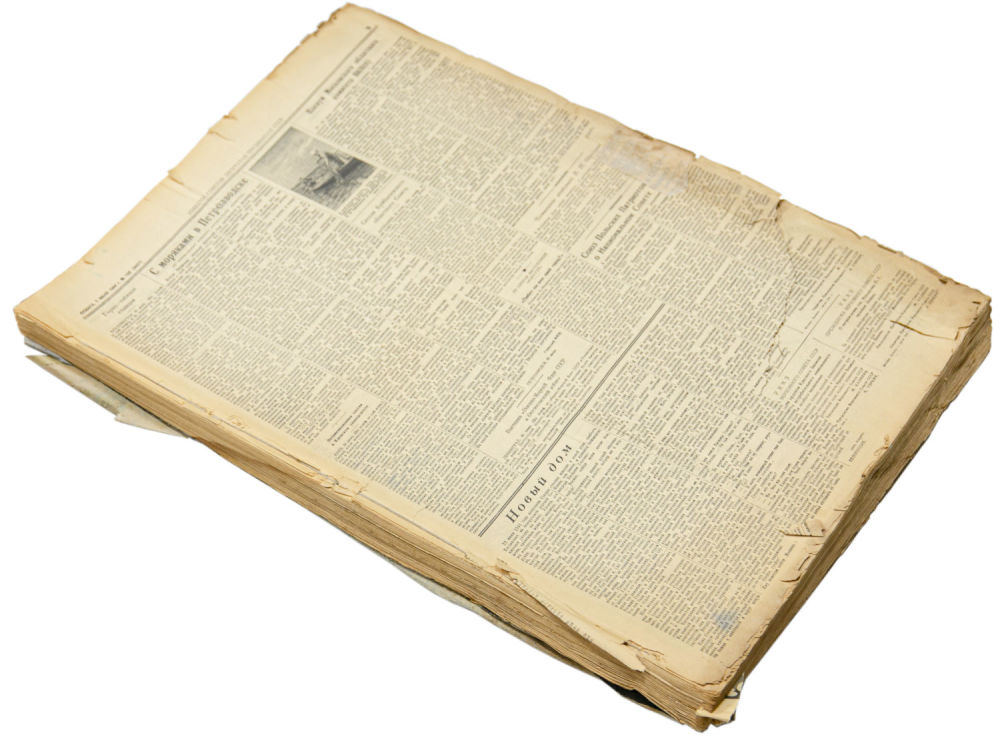 Сохранность – хорошая, обветшание краев страниц, утрата фрагментов бумаги краев страниц.