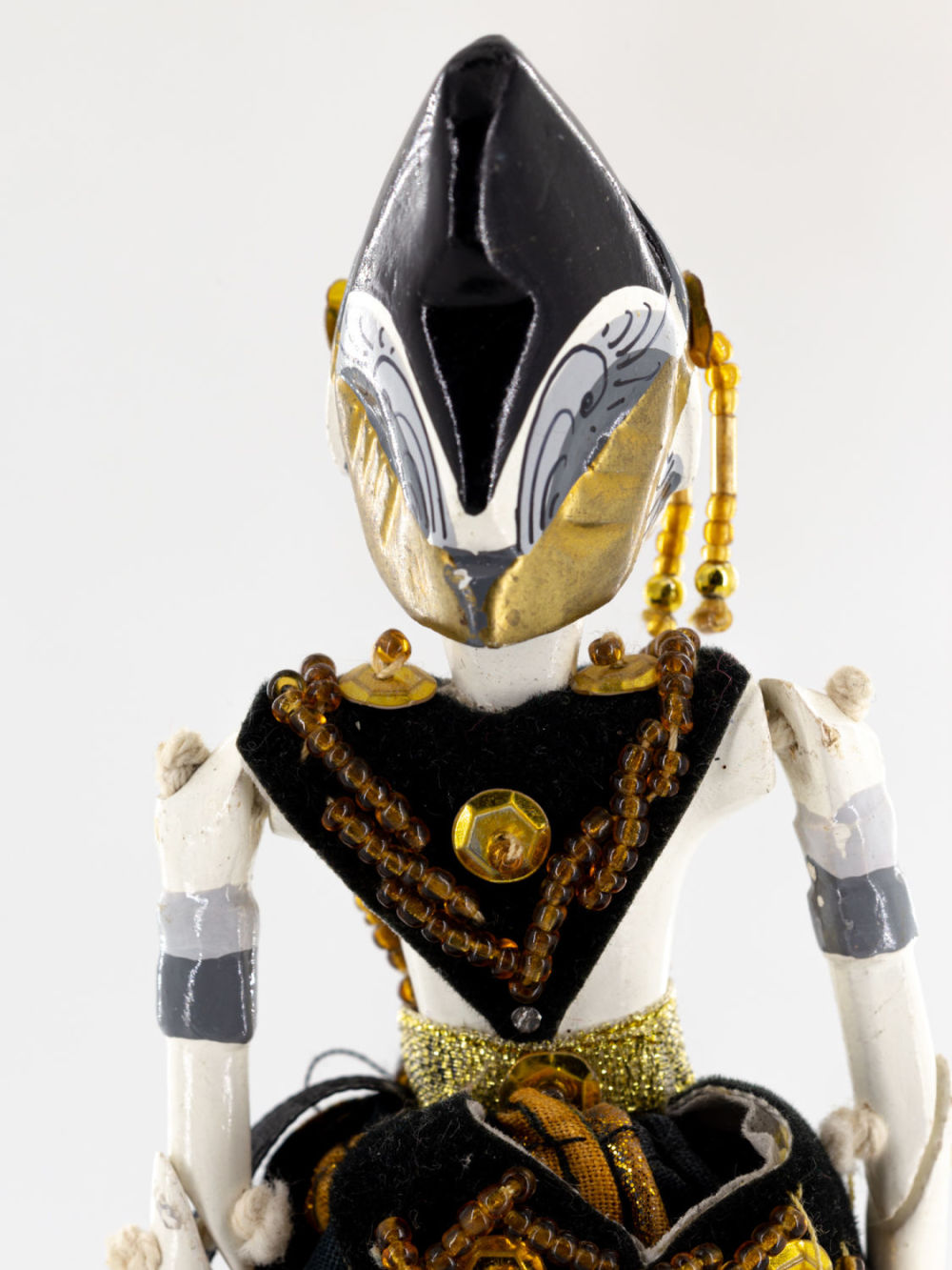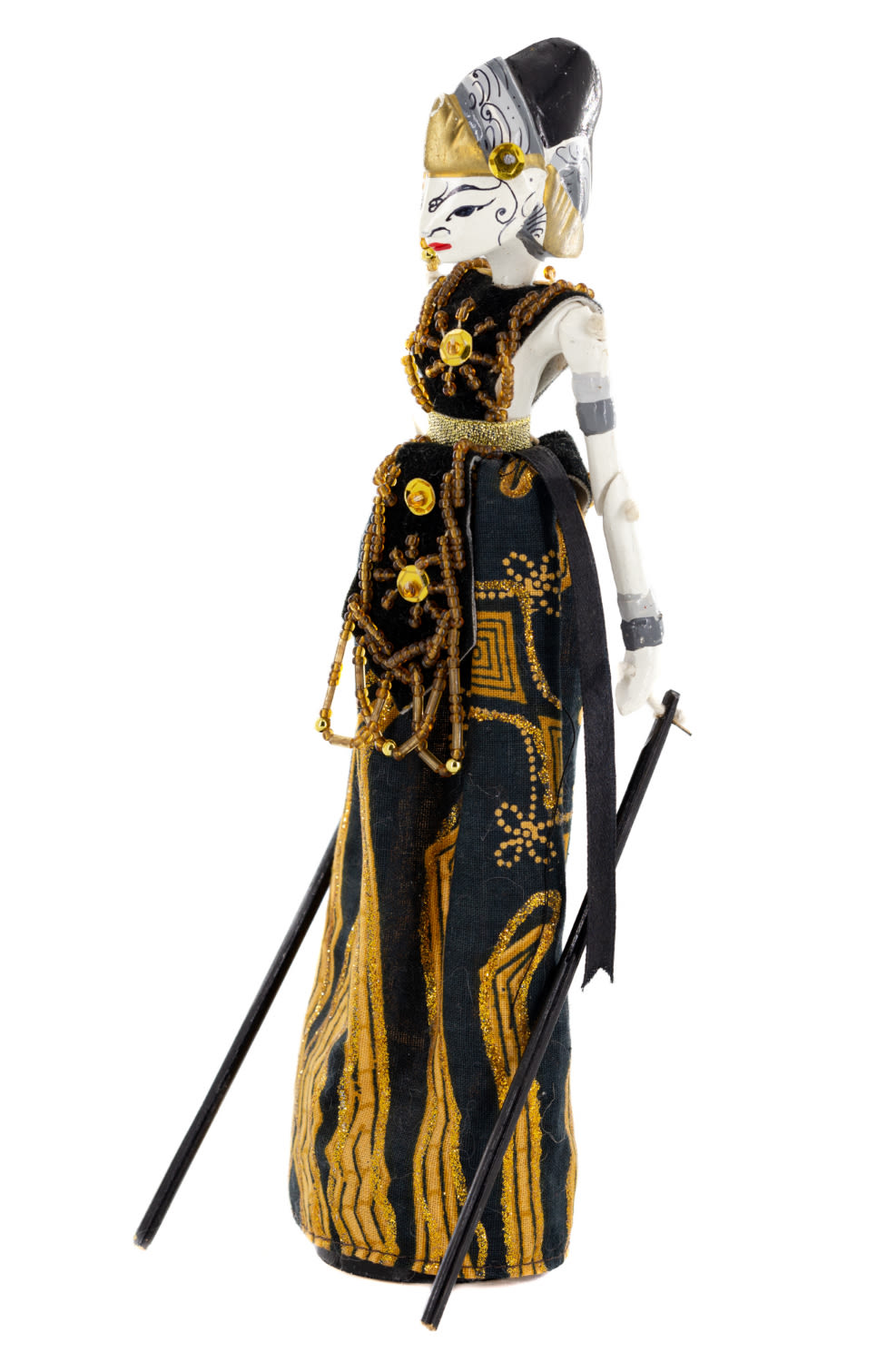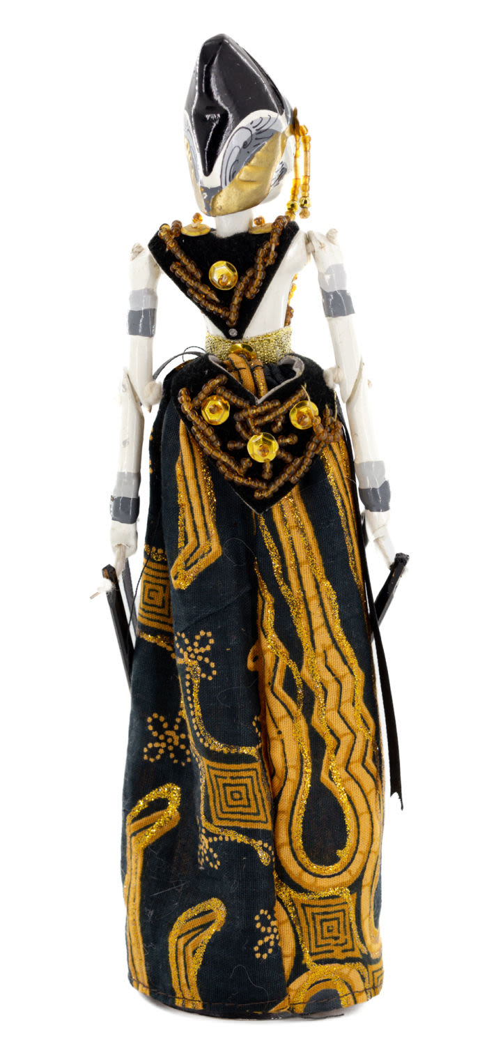 Индонезия. Дерево, крашение; ткань, бисер, пайетки, вышивка. Размеры: высота – 21,8 см. Состояние: в хорошей сохранности, незначительные утраты красочного слоя.
