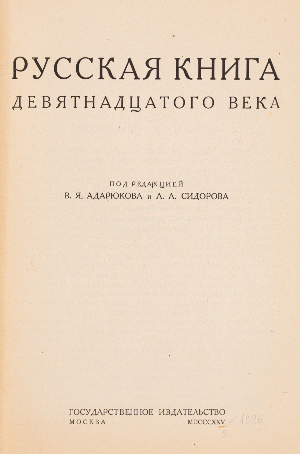 Ч. 2: Русская книга девятнадцатого века. 1925. – 520, [1] с.: ил., портр.; 23х16,5 см.