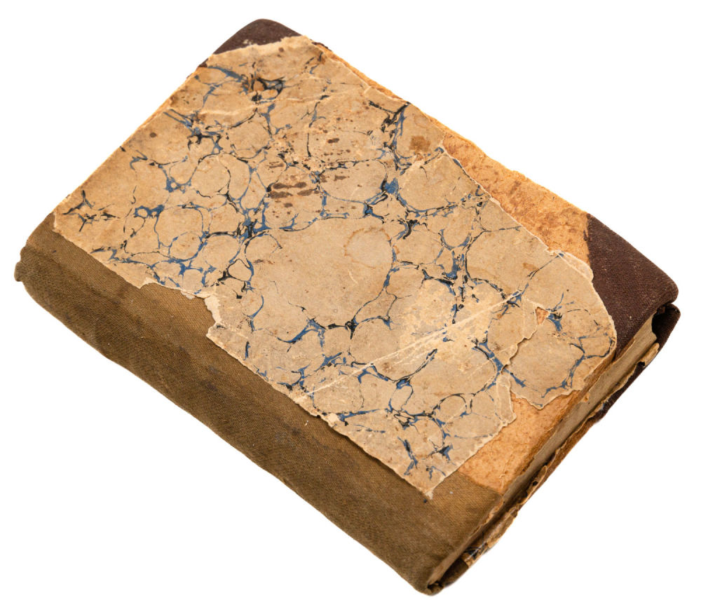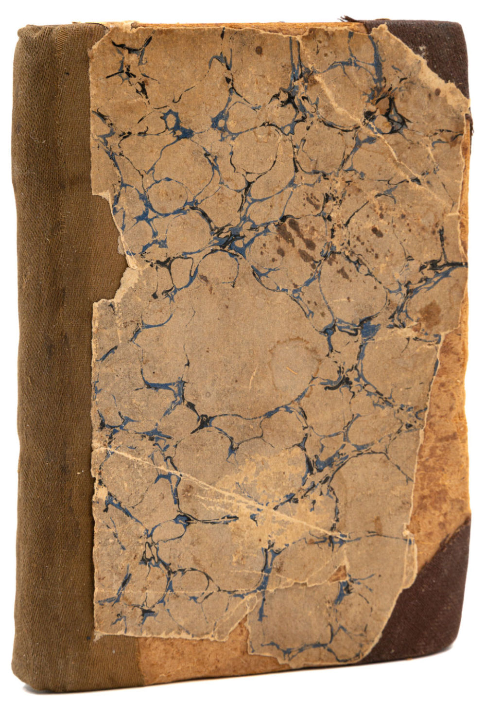 Переплёт – владельческий составной, крышки – картон, «мраморная» бумага, тканевый корешок и уголки.